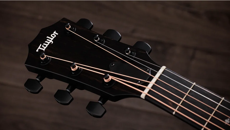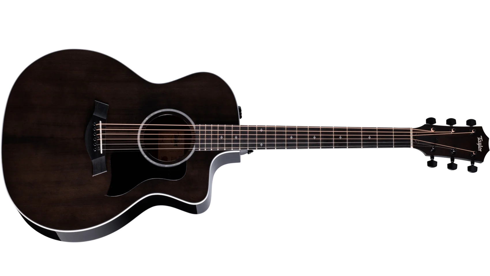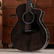 Showcasing a stylish yet understated aesthetic, the 214ce Plus Special Edition, Trans Grey combines visual sophistication with musical versatility and silky-smooth playability. A solid Engelmann spruce top is paired with layered sapele back and sides in our comfortable cutaway Grand Auditorium body, finished with a rich gloss sheen. Sonically, this special-edition model yields a balanced tonal profile with bold, clear projection, making it ideal for a wide range of playing styles. Inside, cantilevered V-Class bracing delivers impressive volume, enhanced sustained and greater harmonic agreement between notes. The top boasts a dark, transparent grey finish while a black finish wraps the back, sides and slim, easy-playing Taylor neck, which features an accomodating 1 11/16” nut width. Satin black tuners and a black pickguard create an appealing visual contrast with an Italian acrylic rosette, white peghead logo and white body binding. Small Diamond fretboard inlays add touches of contemporary elegance. Outfitted with ES2 electronics for a natural amplified acoustic sound, the 214ce Plus Special Edition, Trans Grey comes in a lightweight, durable AeroCase.