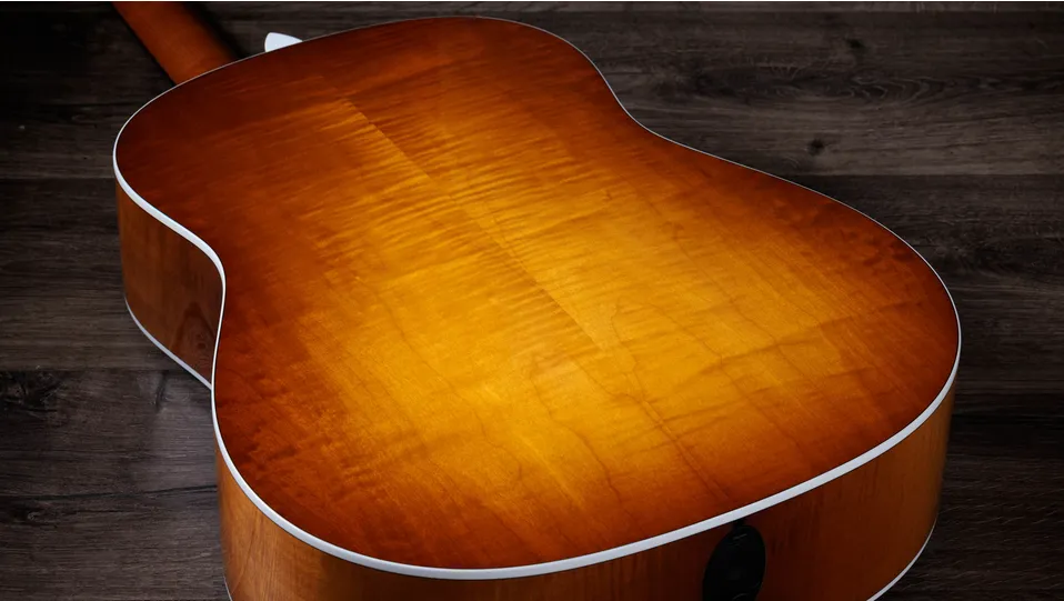 A round-shoulder Grand Pacific body delivers warm, rich sound complemented by a honey-hued finish treatment.