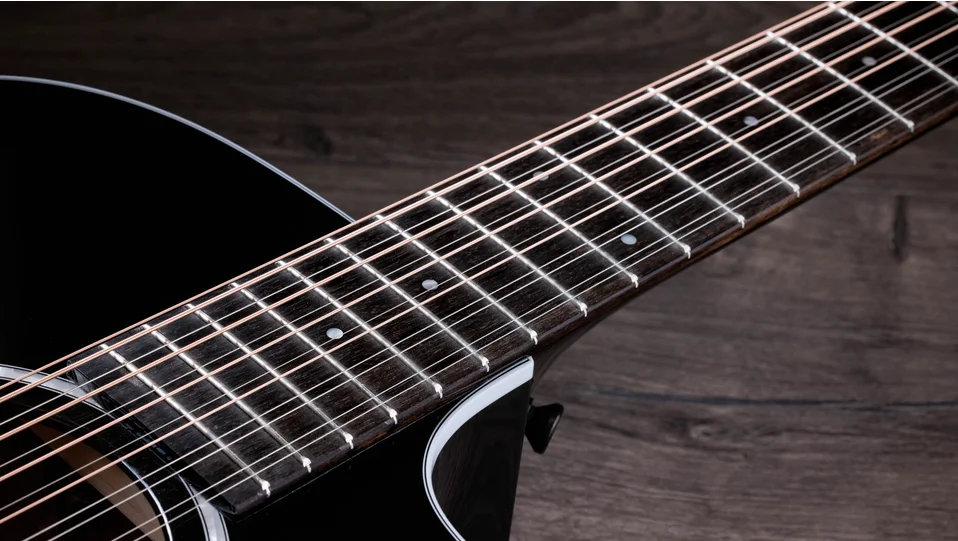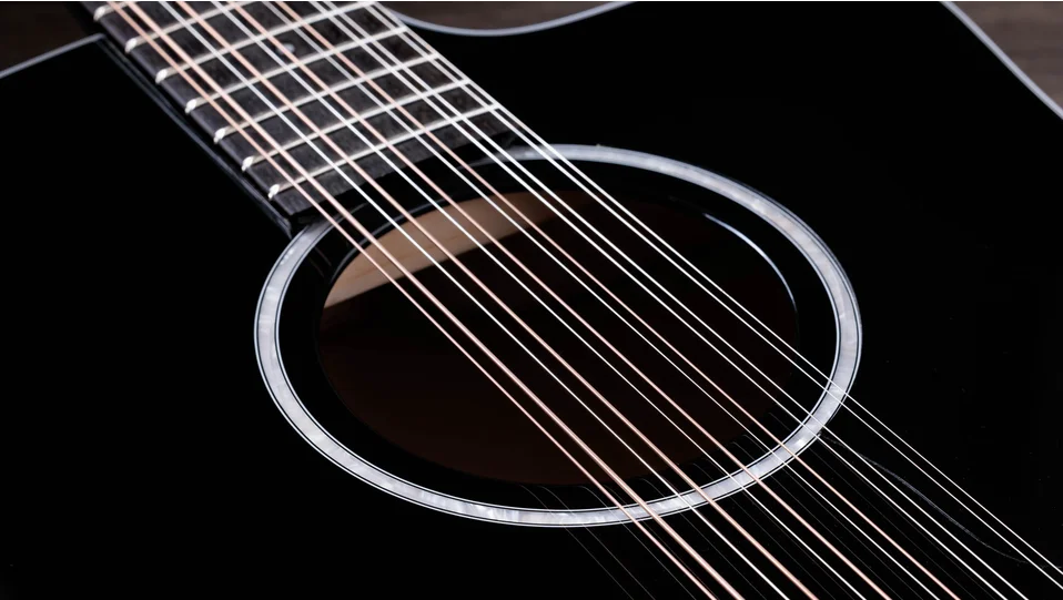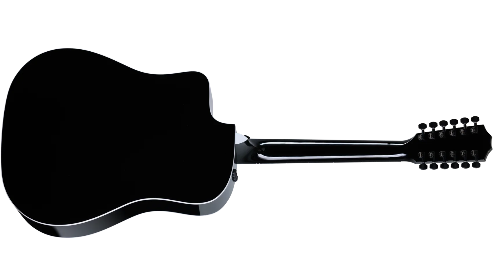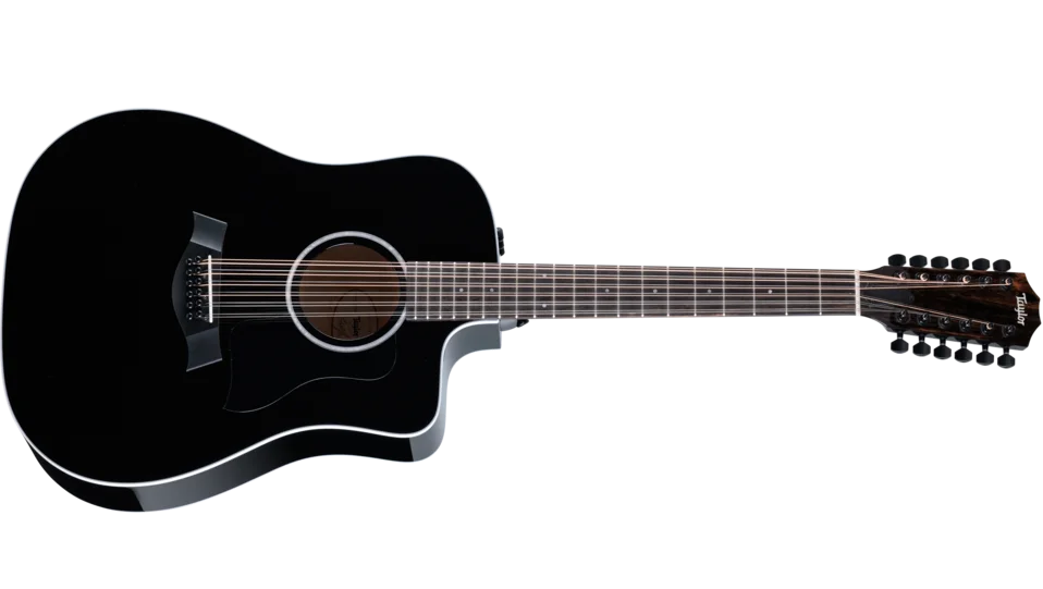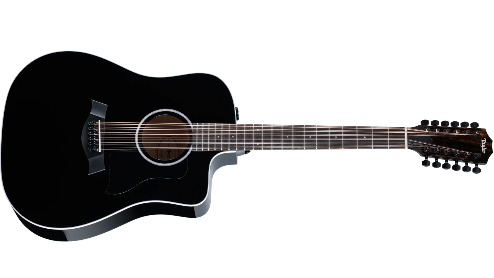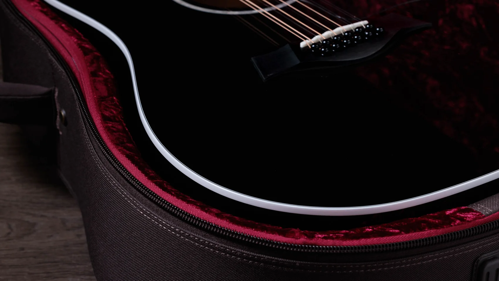 The acoustic-electric 12-string 250ce-BLK Plus offers an alternative sonic flavor for players seeking a new addition to their repertoire, as well as a stylish aesthetic to capture the spotlight. Made with layered maple back and sides, this Dreadnought 12-string features a solid Lutz spruce top, which generates strong projection and a rich octave shimmer. Newer players or those with smaller hands have nothing to fear thanks to the slim Taylor Neck, which makes it easier to hold notes and chords. Striking appointments include a full-body glossy black finish, crisp white binding and satin black tuning machines. The 250ce-BLK Plus ships with built-in ES2 electronics and ships in an AeroCase.