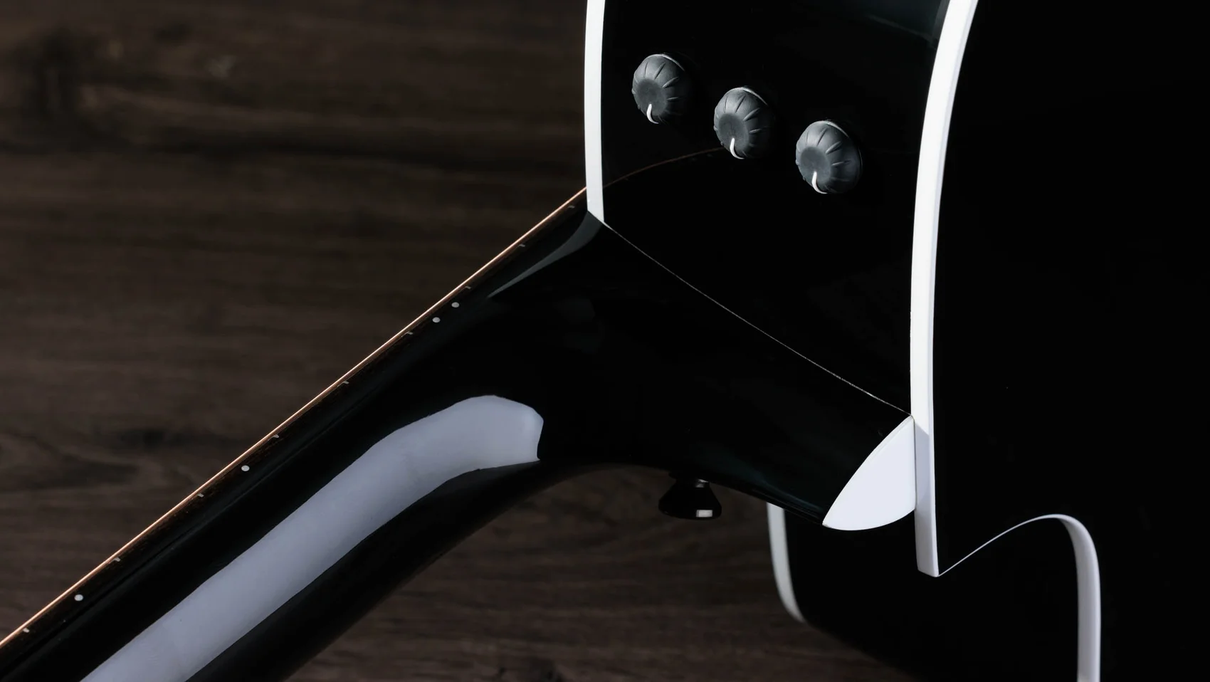 The Venetian cutaway is known for its soft, round lines. The sloping peak of the cutaway will vary depending on the shape of the body.