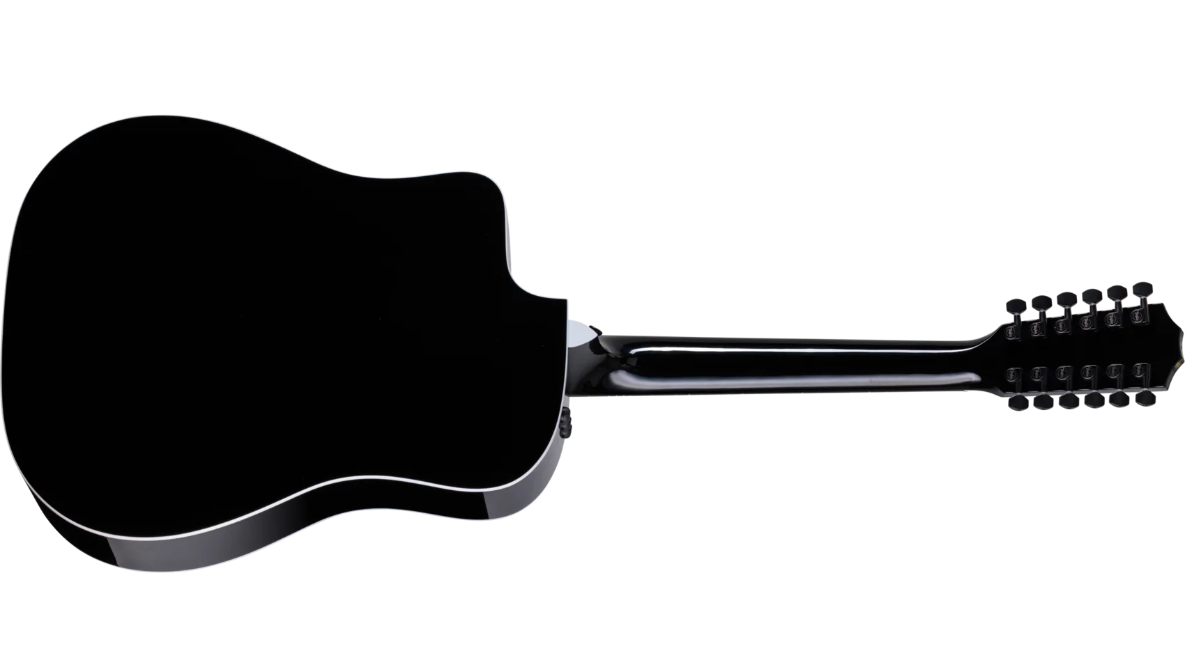 Players hoping to add the uniquely Latin-inspired sounds of the Somos Collection to their toolkit are sure to be enticed by the all-black 250ce Plus BLK Doce Doble, a unison-strung 12-string with a striking visual profile. This cutaway Dreadnought acoustic-electric boasts a solid top of torrefied spruce paired with layered maple back and sides, serving up a clear, bold voice rich with octave sparkle and a dash of aged-in warmth thanks to our proprietary top roasting process. The unison tuning yields a sound that's distinctive within the 12-string category, perfect for traditional Mexican and Latin genres and a welcome addition to other acoustic styles for experimental players. Appointments include an glossy black finish accented with a pearloid pickguard and truss rod cover, satin black tuning machines, white binding, and traditional dot fretboard inlays. Onboard ES2 electronics ensure clean sound for amplified situations, and the included AeroCase offers all the protection of a hardshell case at one-third the weight.