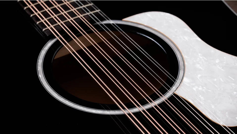 A striking black finish with pearloid accents serves up a perfect complement to this Doce Doble's sparkling voice.