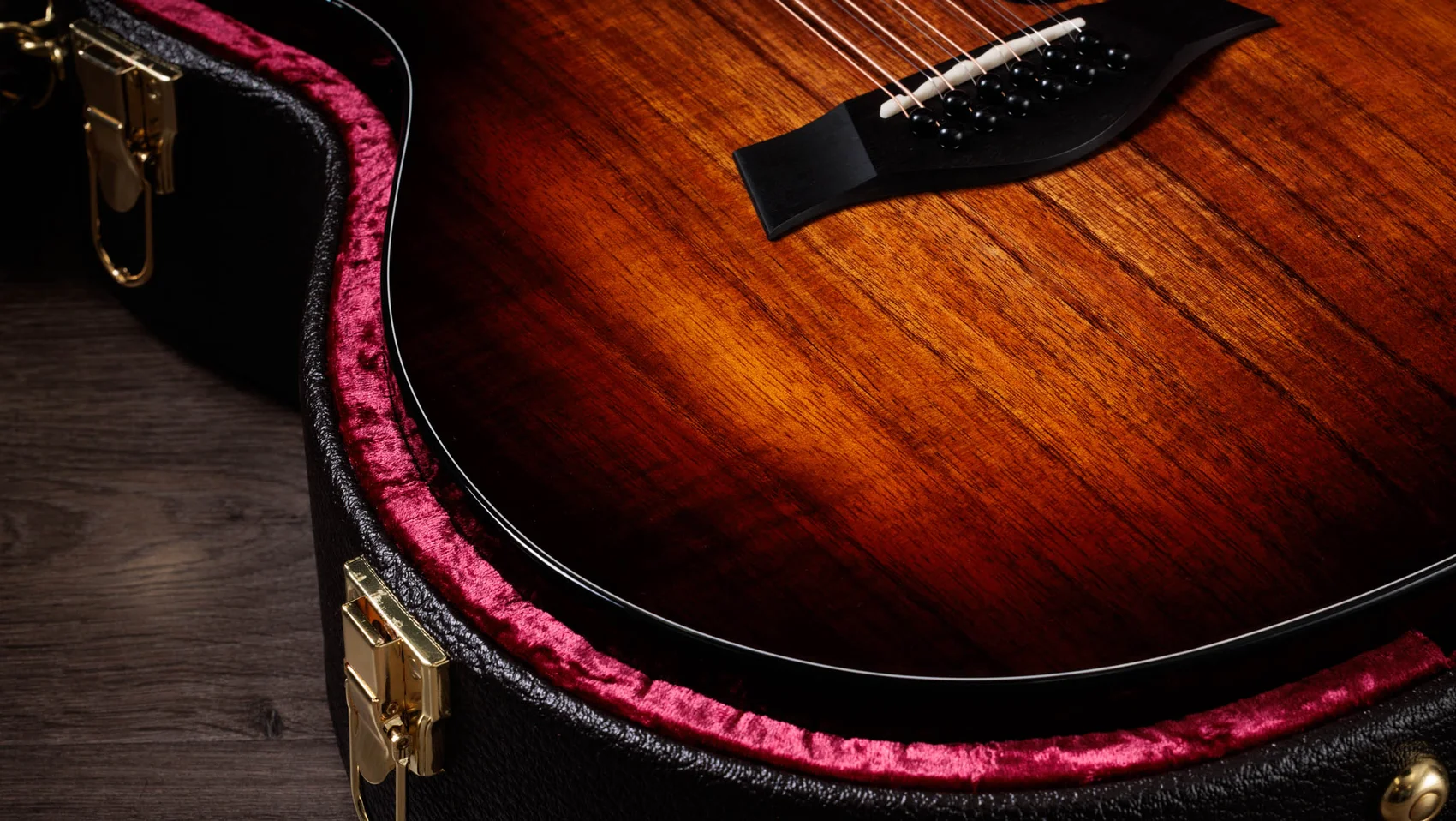 Designed for players who crave the rich octave shimmer of a 12-string guitar, the all-koa 264ce-K DLX serves up a vibrant, punchy tone and a gorgeous visual aesthetic. With a solid koa top and layered koa back and sides, this versatile Grand Auditorium yields a bright, focused tone that matures with play into an increasingly warm, rich, sweet sound. The slender, comfortable Taylor neck boasts a 1-7/8" nut width, inviting effortless fretting, while the Venetian cutaway provides easy access to the upper frets. A full-body gloss finish and shaded edgeburst accentuate koa's natural allure. The 264ce-K DLX, available at our online guitar store, ships with built-in ES2 electronics and a deluxe hardshell case.