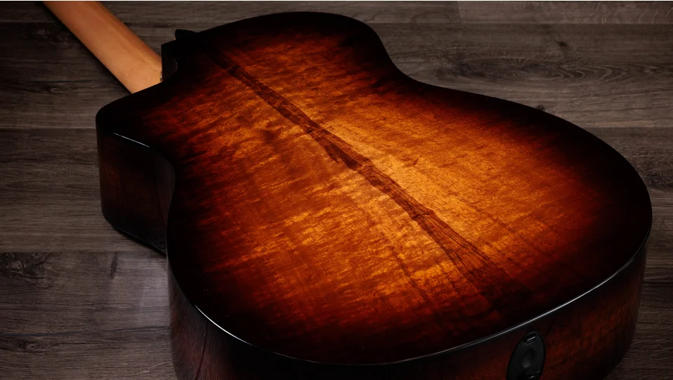 A koa top's visual beauty is instantly inspiring, while its sonic rewards unfold over time, as warm, sweet overtones gradually emerge.