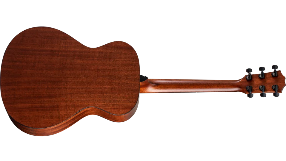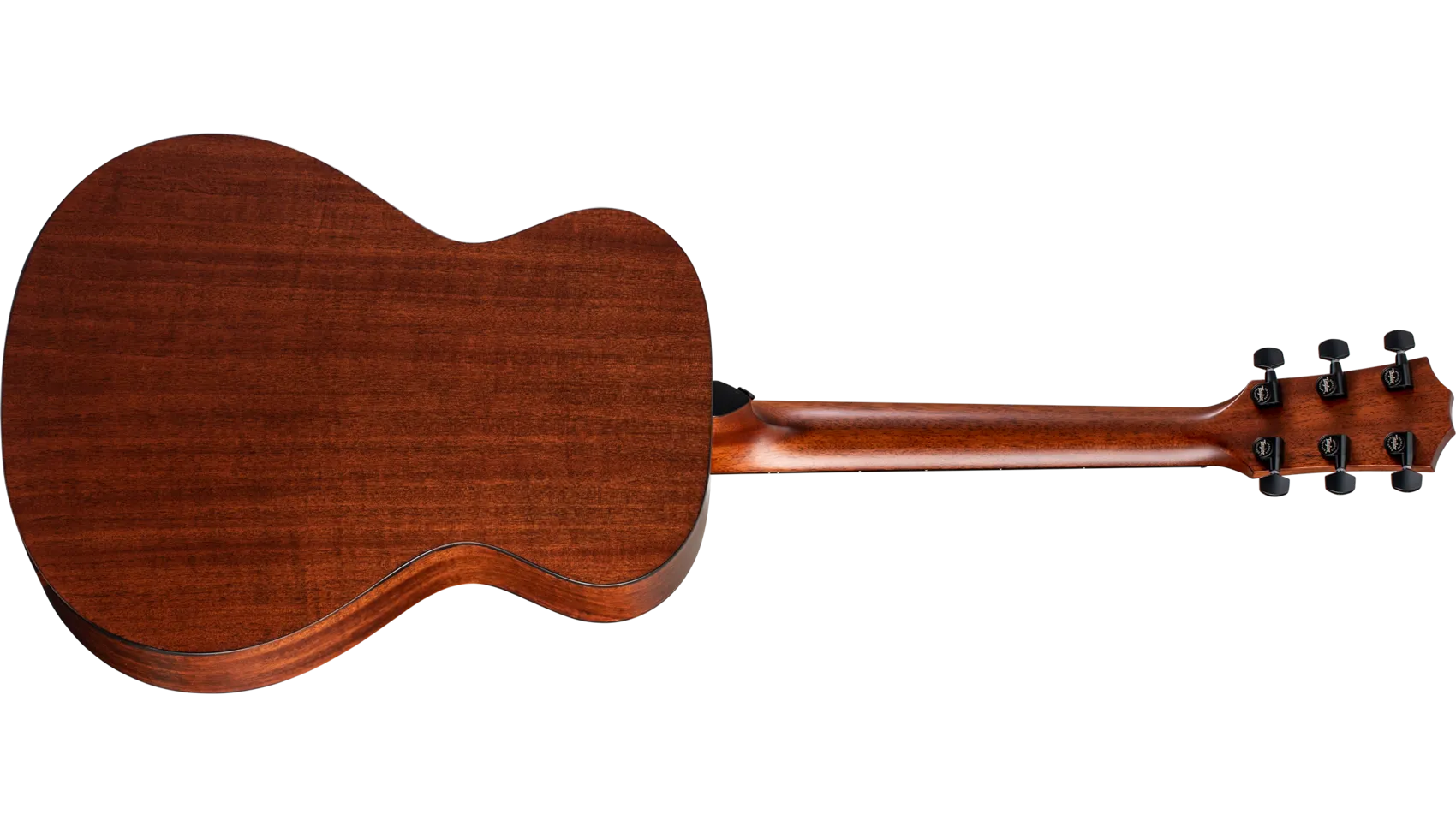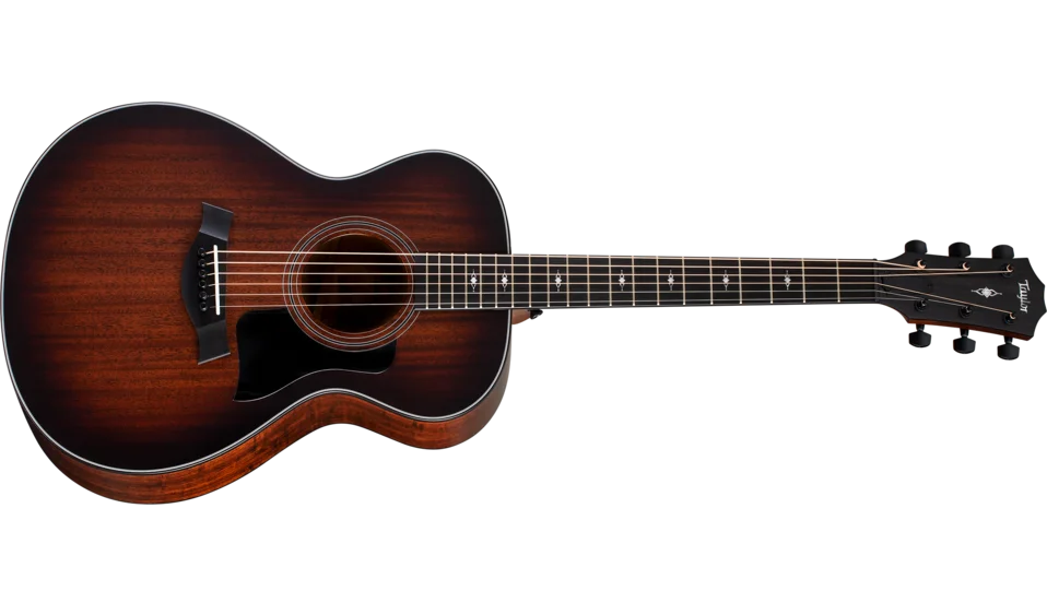 This fingerstyle-friendly Taylor Grand Concert features a tonewood tandem of Tasmanian blackwood back and sides paired with a mahogany top. The result is a surprisingly warm and dynamic tonal response for a smaller body. Signature Taylor playability, including the neck’s inviting 24-7/8-inch scale length, makes fretting and bending strings a breeze. A smooth shaded edgeburst adds a tasteful vintage look that complements the rich-grained mahogany top, with a satin finish adding to the rootsy aesthetic appeal. Appointments include a black pickguard, Italian acrylic small diamond fretboard inlays, black binding with crisp white top trim, and a 3-ring rosette. The guitar ships in a Taylor deluxe hardshell case.