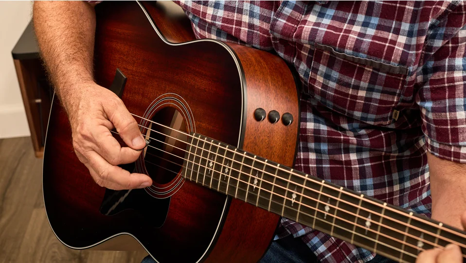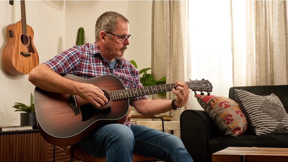 This round-shoulder dreadnought delivers a new flavor of warm, rich Taylor tone.