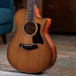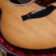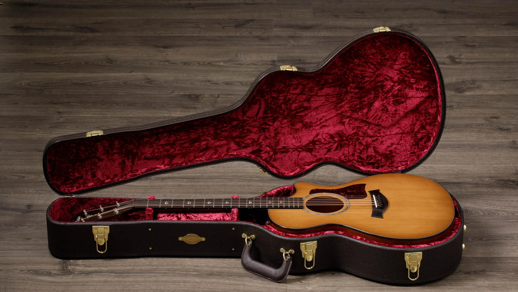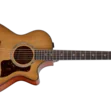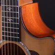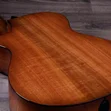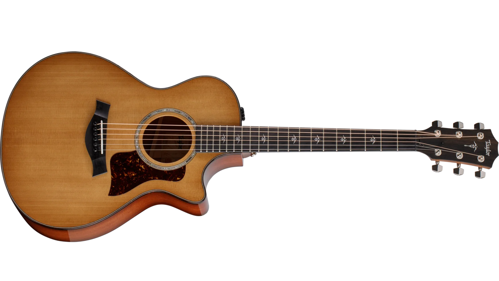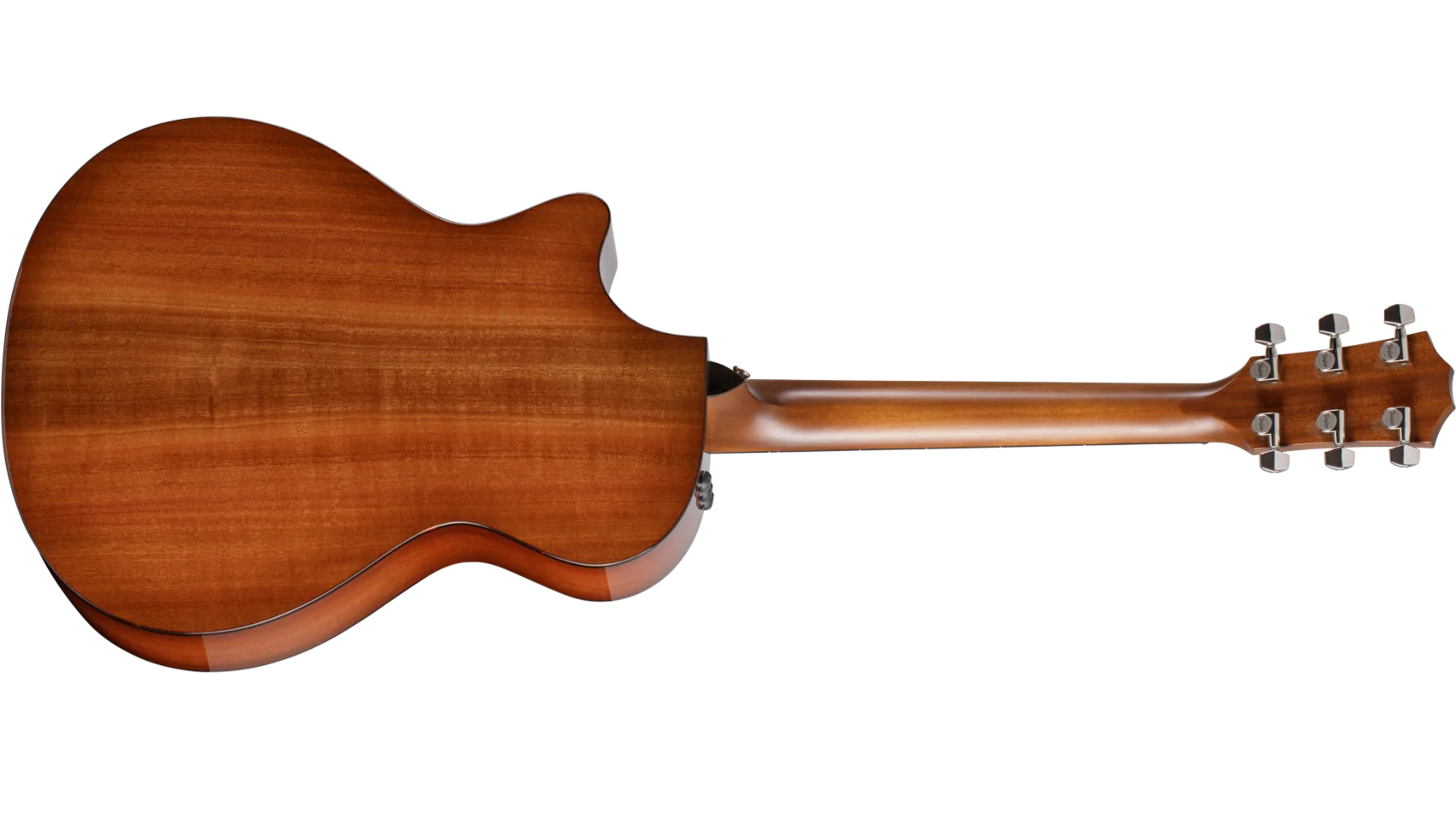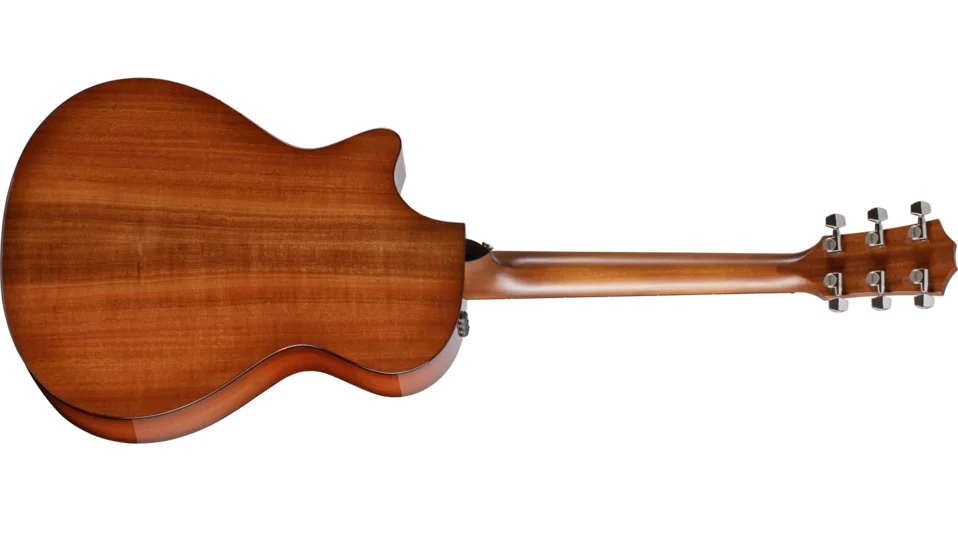 The 512ce is one of our first models to feature back and sides of solid red ironbark, a dense, hard tonewood that yields a rich, sophisticated response with a deep low end and high-fidelity voice reminiscent of Indian rosewood, along with some of mahogany's midrange punch and focus. The Grand Concert 512ce pairs red ironbark with a torrefied Sitka spruce top, lending a played-in character that makes for a warm, piano-like sound with remarkable balance across the tonal spectrum. With V-Class bracing inside, this compact acoustic-electric serves up room-filling projection and blooming sustain, offering a muscular quality that remains sensitive to a soft touch. Appointments include new Aerial inlays in Italian acrylic, a single-ring abalone rosette trimmed with maple and black purfling, and a tastefully subtle edgeburst. It ships with ES2 electronics in a deluxe hardshell guitar case.