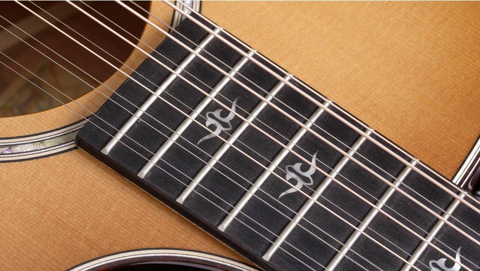 Fans of the 12-string experience are sure to be inspired by the new 552ce, a compact 12-fret Grand Concert model crafted with back and sides of solid red ironbark and a torrefied spruce top. That tonewood pairing yields power and clarity in equal measure, offering a dialed-up version of the lush overtones and pristine trebles that players love from Indian rosewood. The 12-fret configuration delivers extra midrange punch while creating a more relaxed, slinky handfeel, adding up to a supremely comfortable feel for players of all styles. And with small body dimensions, it's ultra-responsive to a light touch, giving the guitar impressive dynamic range.