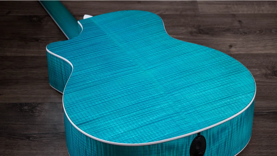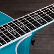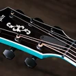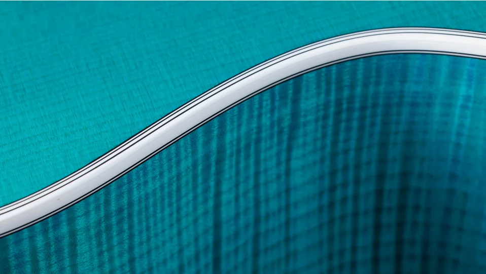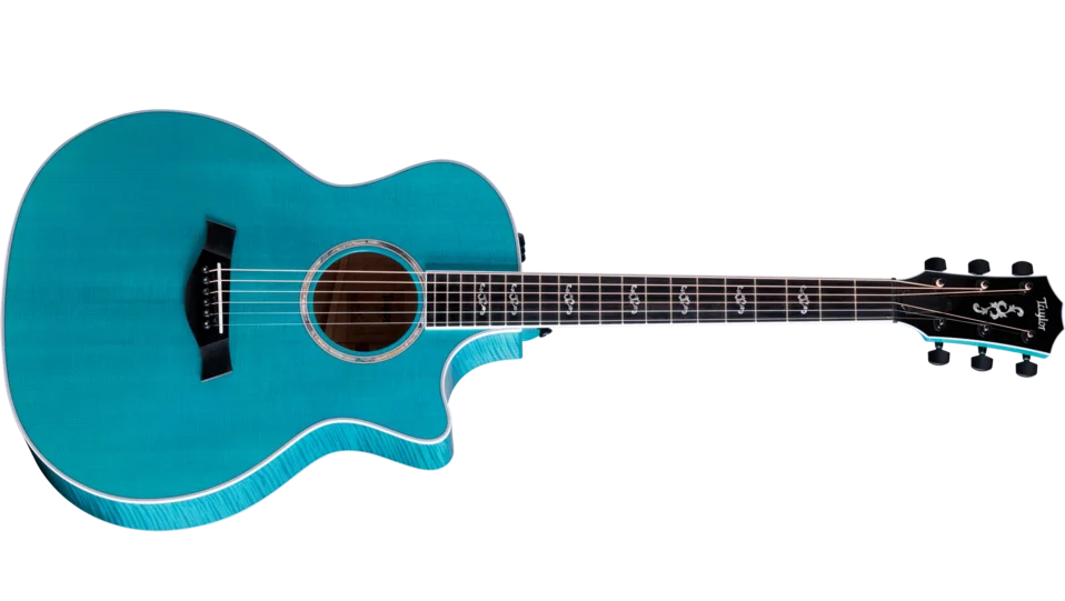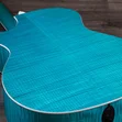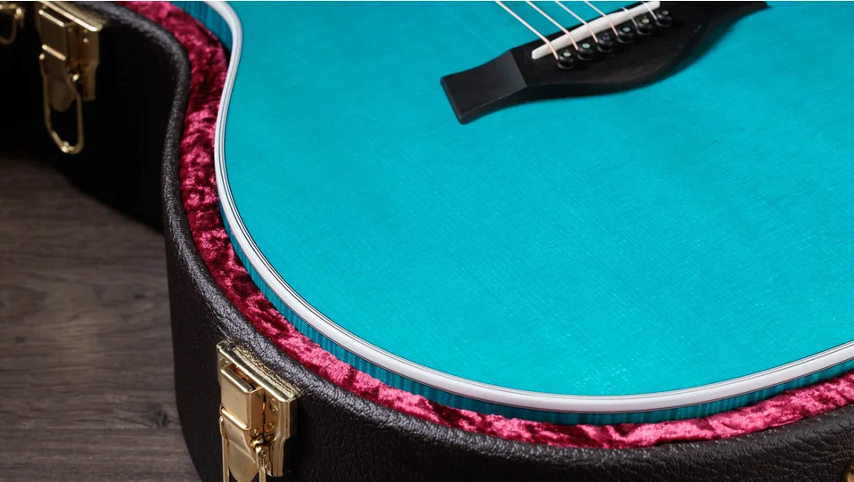 Boasting a beautiful blue color treatment and suite of elegant appointments, the 614ce Aquamarine LTD brings a fresh, attractive visual aesthetic to our time-tested maple/spruce Grand Auditorium. Pairing solid, figured Big Leaf maple back and sides with a solid Sitka spruce top, this U.S.-made model offers a highly player-reflective sound and a balanced response across the frequency spectrum. V-Class bracing levels up the volume and sustain, while ensuring immaculate pitch accuracy up and down the neck. Eye-catching white binding and purfling add stark contrast to the attractive gloss-finished aquamarine color treatment. Elegant visual details, including Italian acrylic Engraved Victorian inlays, a single-ring green abalone rosette and abalone-dotted bridge pins, complement the guitar’s enchanting visual aesthetic. It ships with ES2 electronics and a hardshell case.