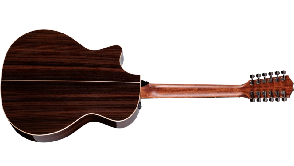 Our 800 Series has a long history of offering richly voiced 12-string guitars, dating back to the 1970s when artists like Neil Young began playing them for their comfortable feel and shimmering tone. With the 854ce, players can experience the signature 12-string sound in a package that offers truly unmatched playability thanks to the accommodating Grand Auditorium body shape and built-in radius-style armrest. This model features a solid Sitka spruce top paired with Indian rosewood back and sides, with our V-Class bracing inside to dial up more volume and long, blooming sustain. The result is a balanced, adaptable tone profile with warm lows, pristine trebles and a robust overtone response. Our slender neck profile offers a remarkably relaxed fretting feel, while the rosewood armrest provides a smooth surface for your strumming arm. Sleek, striking visual appointments include Element fretboard inlays in mother-of-pearl, a green abalone rosette, maple binding and a rosewood pickguard. It ships with ES2 electronics and a deluxe hardshell case.