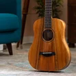 The Baby Taylor has always inspired new and experienced players alike with its compact size and tuneful sound, and this model (BTe Koa) takes the design to the next level with all-Hawaiian-koa construction. The solid top serves up clear, vibrant acoustic tone with koa's distinctive sparkle, while the layered back and sides add a rich visual dimension thanks to koa's beautiful grain. This three-quarter-size acoustic guitar includes ES-B electronics with a handy digital tuner, and includes a lightweight gig bag, making it a perfect option for playing on the couch, jamming around the campfire or practicing on the road.