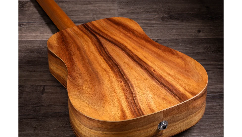 A koa top's visual beauty is instantly inspiring, while its sonic rewards unfold over time, as warm, sweet overtones gradually emerge.