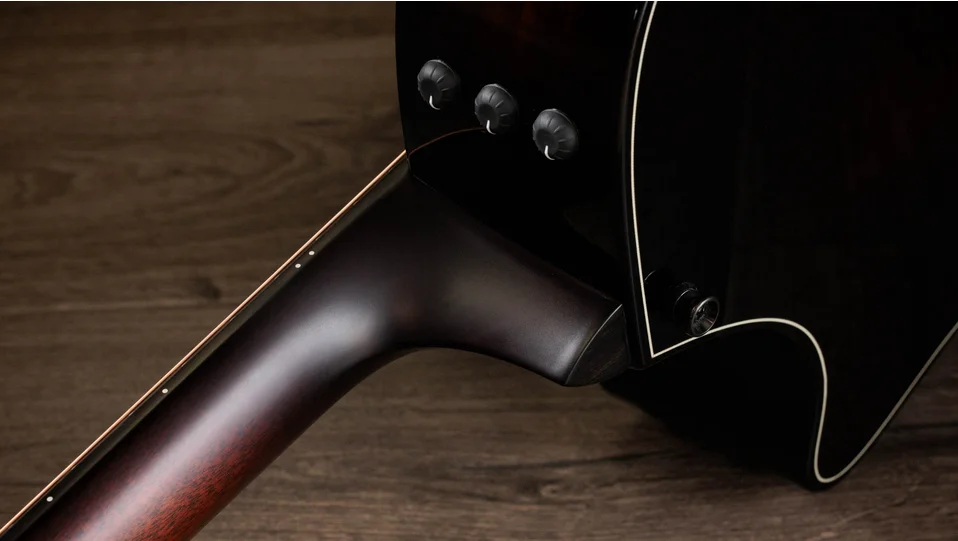 Our beveled cutaway design provides a more player-friendly feel for guitarists who utilize every inch of the fretboard. It features a compound design with a smoothened edge along the corner of the body between the end of the cutaway and the neck heel, providing a more comfortable feel for the fretting hand.
