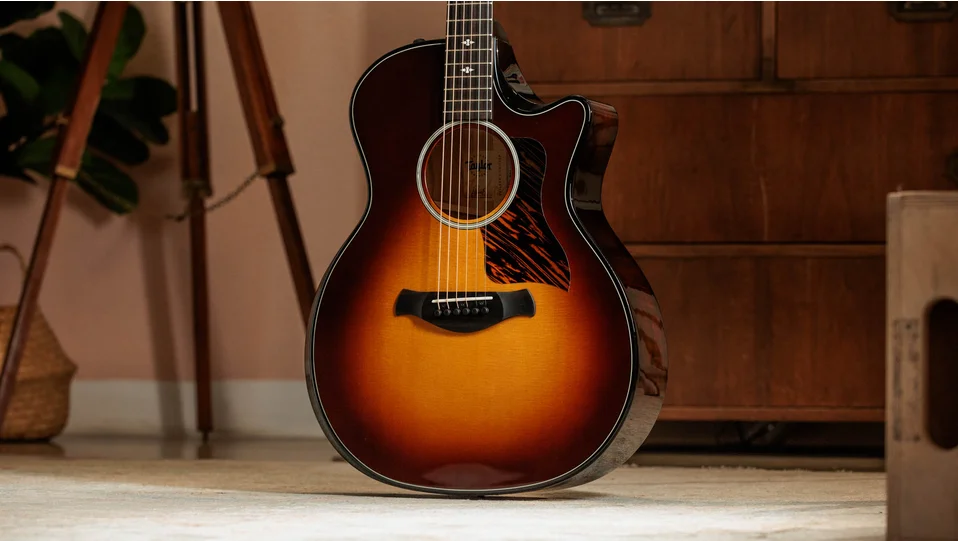 The Builder’s Edition 514ce Kona Burst embodies Taylor’s commitment to innovative craftsmanship, player-friendly guitar designs and sustainable sourcing. Featuring a beveled armrest and cutaway, chamfered body edges and a contoured Curve Wing bridge, this Grand Auditorium is designed for maximum comfort during extended playing sessions. Shamel ash back and sides, responsibly sourced from Southern California, combine with a solid Sitka spruce top to deliver a warm, focused voice with woody overtones, punchy midrange, crisp trebles and a balanced low-end presence. Our V-Class voicing architecture enhances sustain, volume and harmonic agreement between notes. Excellent for strumming, fingerstyle and everything in between, this model excels in just about any musical setting. A hand-sprayed Kona Burst and lustrous gloss finish are accentuated by a firestripe pickguard, an Italian acrylic rosette and Compass inlays. The Builder’s Edition 514ce comes equipped with premium Gotoh 510 antique chrome tuners and ES2 electronics and ships in a deluxe hardshell case.
