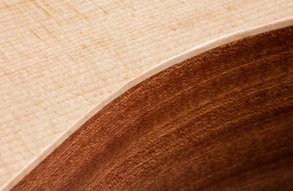 A range of body styles crafted with specially voiced Big Leaf maple and Sitka spruce yield a warm, punchy response covering a wide breadth of sounds and playing applications.