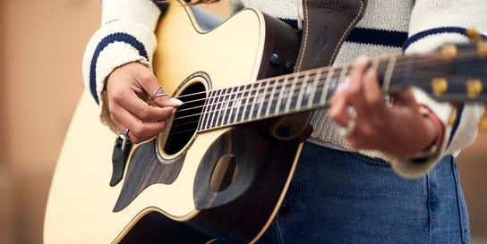 The unique acoustic properties of top woods help color a body shape’s fundamental sound. The key is to find the wood that matches up best with your playing style, like the warmth of a cedar top for fingerpicking and the feeling of responsiveness in your hands.