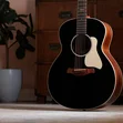 With its bold color treatment and rich midrange voice, the Gold Label 514e Blacktop offers an enticing new entry point to Taylor's Gold Label experience. This Super Auditorium acoustic-electric features back and sides of solid mahogany paired with a torrefied Sitka spruce top, crafted on the foundation of the fanned V-Class bracing introduced with the first models in the collection. Along with the slightly larger dimensions of the Super Auditorium body, those elements add up to a woody, dry tone with a rumbling low-end character and clear power and sustain in the midrange, with a strong fundamental focus and controlled overtones. Visually, this model strikes a bold contrast between its black top finish and cream-colored accents, including Crest fretboard inlays, rosette, binding, and pickguard. Other details include a Curve Wing bridge in Honduran rosewood with matching bridge pins, nickel tuning machines, and a full-body gloss finish. It features LR Baggs Element VTC electronics for warm, authentic plugged-in tone and a deluxe hardshell case with a striking British Cocoa exterior.