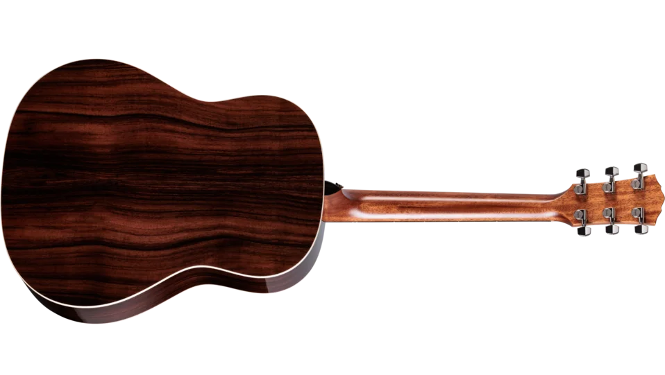 Our Gold Label guitars produce a warm, heritage sound unlike anything you've heard from Taylor before, and this modified Grand Pacific adds even more depth and variety to the collection. The Gold Label 717e SB boasts a deeper version of our round-shoulder dreadnought body shape, coaxing out an exceptionally warm, open voice with a rich bass-range response, clear power across the spectrum and treble notes with a round, smooth character. The classic tonewood pairing of Indian rosewood and Sitka spruce yields blooming overtones along with a dash of played-in sweetness thanks to our proprietary torrefaction process for the soundboard. Inside, a fanned variant of our V-Class bracing architecture bolsters the volume and sustain, while our patented Action Control Neck™ incorporates a long-tenon joint to enhance low-end resonance. The neck design also offers unmatched micro-adjustability and playing comfort—you can alter your action (string height) in seconds with a simple turn of a bolt through the soundhole without needing to remove the neck or detune the strings.