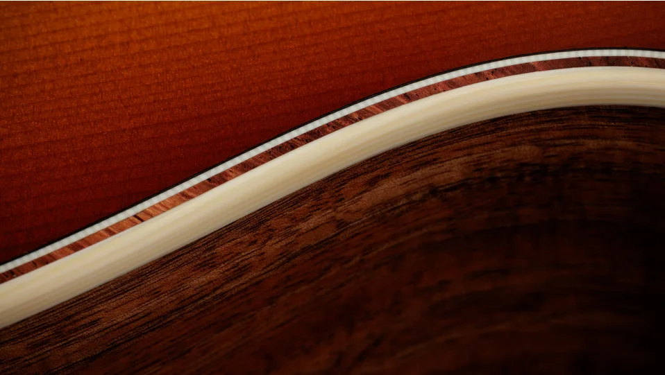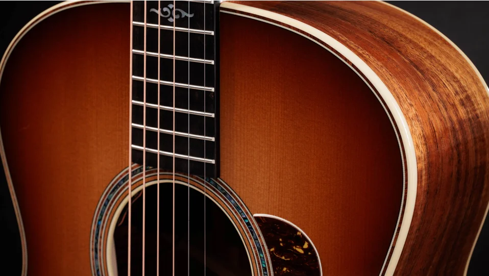 This sunburst-finished Super Auditorium blends heritage warmth with exceptional power thanks to Hawaiian koa, torrefied spruce and fanned V-Class bracing.