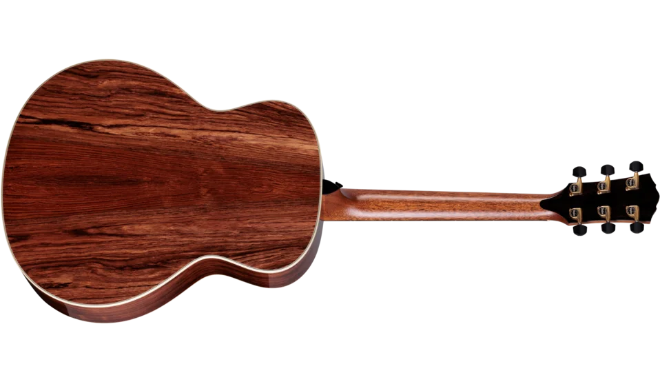 Inside, fanned V-Class® bracing unlocks impressive low-end resonance and midrange richness in addtion to delivering the inherent benefits of the V-Class platform: louder volume, longer sustain and remarkable pitch accuracy up the neck. A revolutionary Action Control Neck™ allows players to fine-tune string height in minutes without removing the neck or strings. Its long-tenon design enhances the wood coupling between neck and body for even greater low-end depth, and its slender profile ensures familiar Taylor playability.