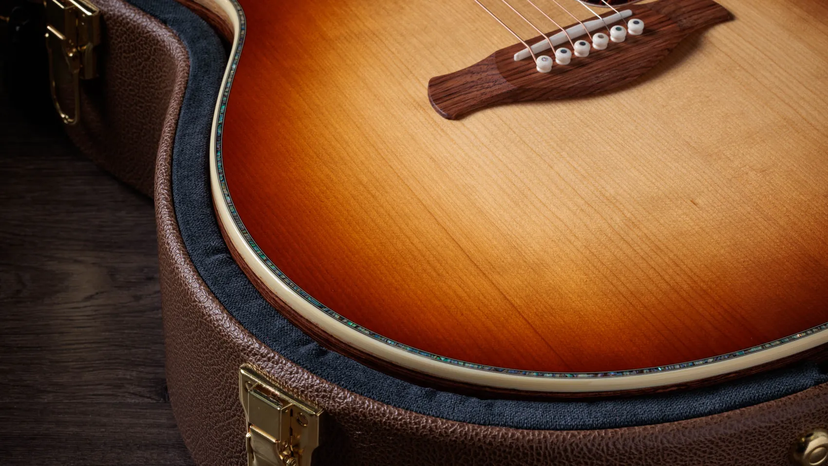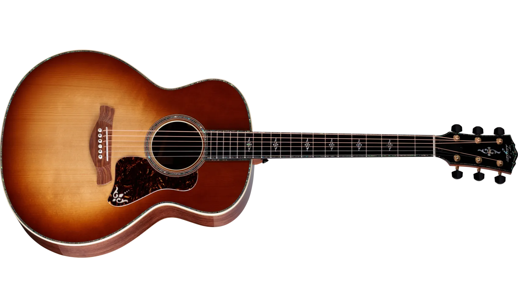 With its premium-grade tonewoods, a golden-brown “Teardrop Sunburst” top and a suite of dazzling appointments, the Gold Label 914e SB represents the height of visual and tonal sophistication within the Gold Label Collection. Solid Honduran rosewood is paired with a torrefied Adirondack spruce top in a Super Auditorium body, yielding a deep, warm, beautifully textured voice marked by blooming overtones and a played-in sonic personality. Heavier strummers will appreciate how the Adirondack top’s extra headroom encourages them to really dig in.