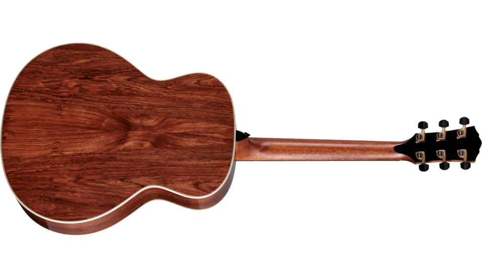Inside, fanned V-Class® bracing unlocks impressive low-end resonance and midrange richness in addition to delivering the inherent benefits of the V-Class platform: louder volume, longer sustain and remarkable pitch accuracy all the way up the neck. A revolutionary Action Control Neck™ allows players to fine-tune string height in minutes without removing the neck or strings. Its long-tenon design enhances the wood coupling between neck and body for even greater low-end depth and its slender profile ensures familiar Taylor playability.