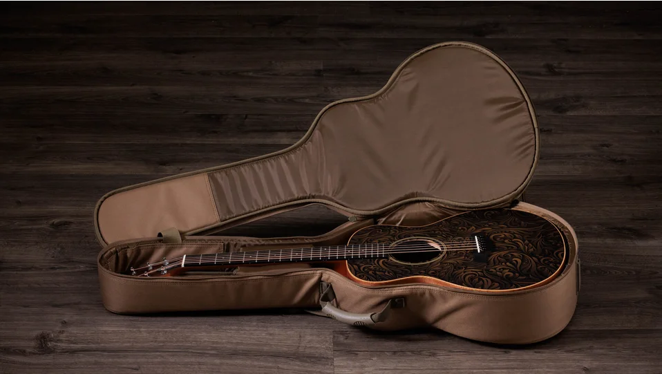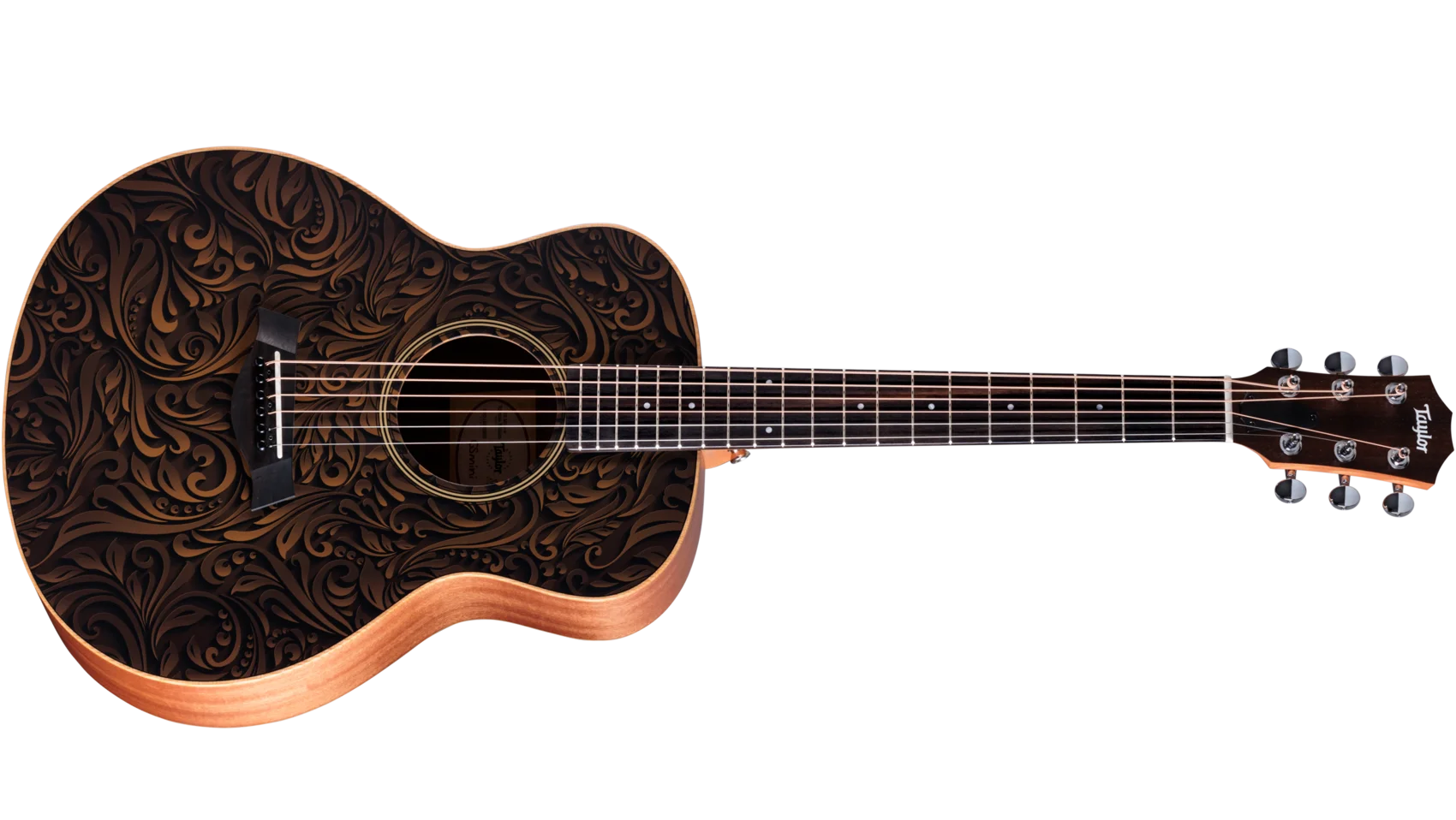 Featuring a vintage-inspired soundboard design with a bold, modern personality, the GS Mini-e Special Edition, Paisley Burst brings an ornate aesthetic to the beloved GS Mini family. An elaborate paisley pattern on the spruce top, rendered in rich brown hues, creates a striking depth that exudes classic elegance while remaining fresh and contemporary. Behind its artful exterior, this special-edition model features a solid torrefied Sitka spruce top paired with layered sapele back and sides. It serves up a vibrant, balanced tone with plenty of projection and a sweet, played-in sound right out of the box, thanks to the special roasting process for the top. Together, the scaled-down Grand Symphony body, slim Taylor neck with a narrower nut width, and 23-½-inch scale length ensure easy fretting and a fun, comfortable playing experience. Equipped with an ES-B pickup and built-in digital tuner for amplified play, the GS Mini is ready for any musical adventure—whether you’re jamming at home, playing around the campfire or taking the stage. It comes with a structured gig bag for storage and easy transport.