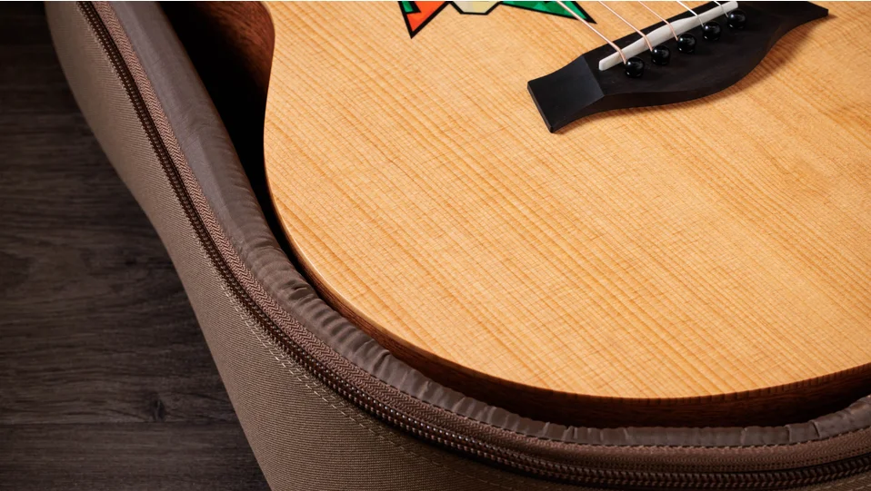 Taylor's ongoing partnership with acclaimed musician and producer Jacob Collier has produced one of the most unique instrument configurations on the market: the five-string acoustic featuring Jacob's preferred DAEAD tuning, which opens up a world of musical possibilities for adventurous players. This GS Mini boasts a custom art design created in collaboration with the singer-songwriter and multi-instrumentalist, a splash of vibrant color that visually complements the guitar's singular voice. A solid torrefied spruce top yields a punchy response with rich projection and a touch of aged-in sweetness and depth, while the compact GS Mini body delivers exceptional playing comfort and portability. It ships with a structured gig bag for storage and easy portability.