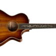 The compact Grand Concert body is a natural fit with Hawaiian koa, whose vibrant voice is reflected in these guitars' stunning aesthetic details and American craftsmanship. The K22ce 12-Fret boasts back, sides and top of solid, beautifully grained Hawaiian koa, resulting in a punchy response with a warm, rich midrange, crisp trebles and low-end warmth. The 12-fret configuration adds a bit of extra midrange heft in addition to providing a slinkier, more relaxed fretting feel. Koa's natural aging properties mean this guitar will sound better and better with age, opening up with new sweetness and depth over time. Maple binding, Spring Vine inlays and a dark edgeburst finish highlight koa's organic visual character.