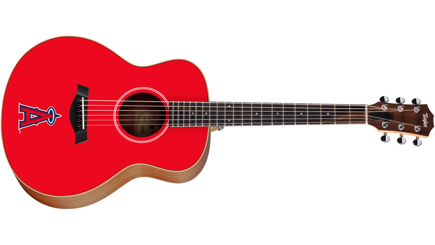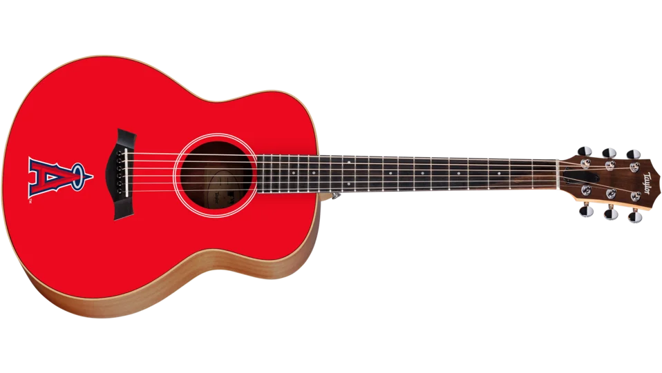 Rock your team colors with an Angels™- branded Taylor GS Mini acoustic guitar officially licensed by MLB. The award-winning GS Mini offers easy playability, musical pitch precision, and a rich, bold voice in a compact, inviting form.