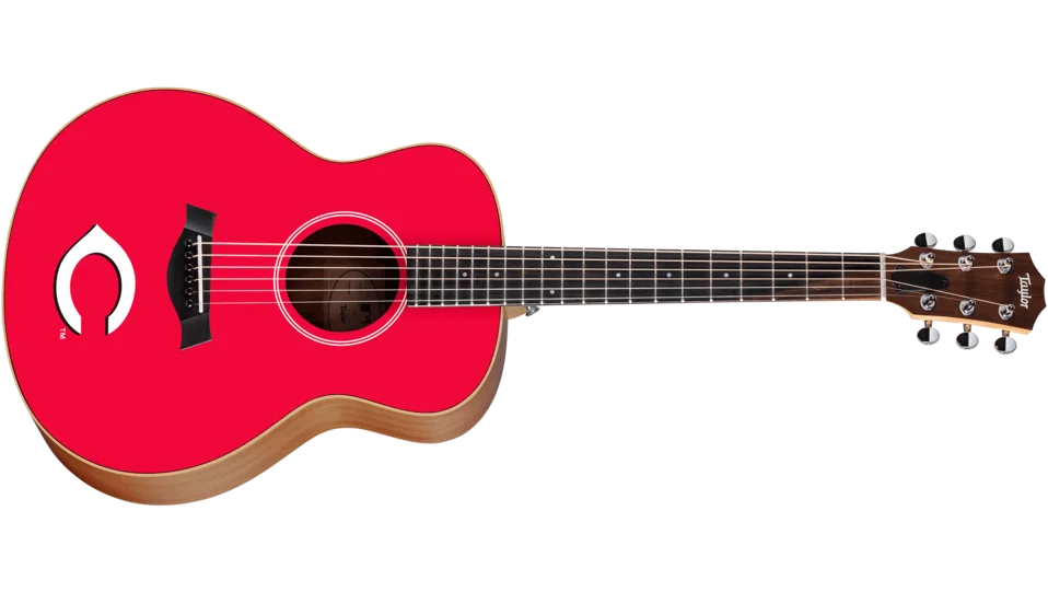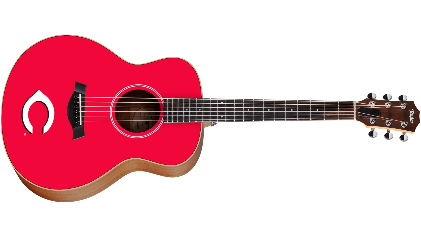 Rock your team colors with a Cincinnati Reds™- branded Taylor GS Mini acoustic guitar officially licensed by MLB. The award-winning GS Mini offers easy playability, musical pitch precision, and a rich, bold voice in a compact, inviting form.