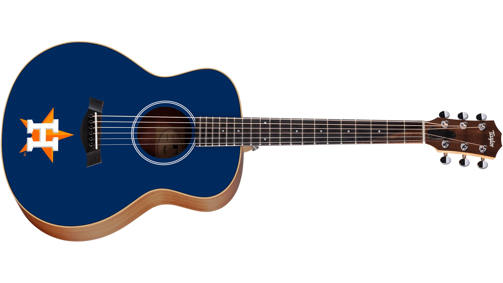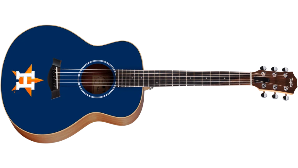Rock your team colors with a Houston Astros™- branded Taylor GS Mini acoustic guitar officially licensed by MLB. The award-winning GS Mini offers easy playability, musical pitch precision, and a rich, bold voice in a compact, inviting form.