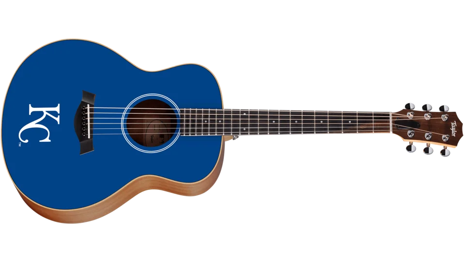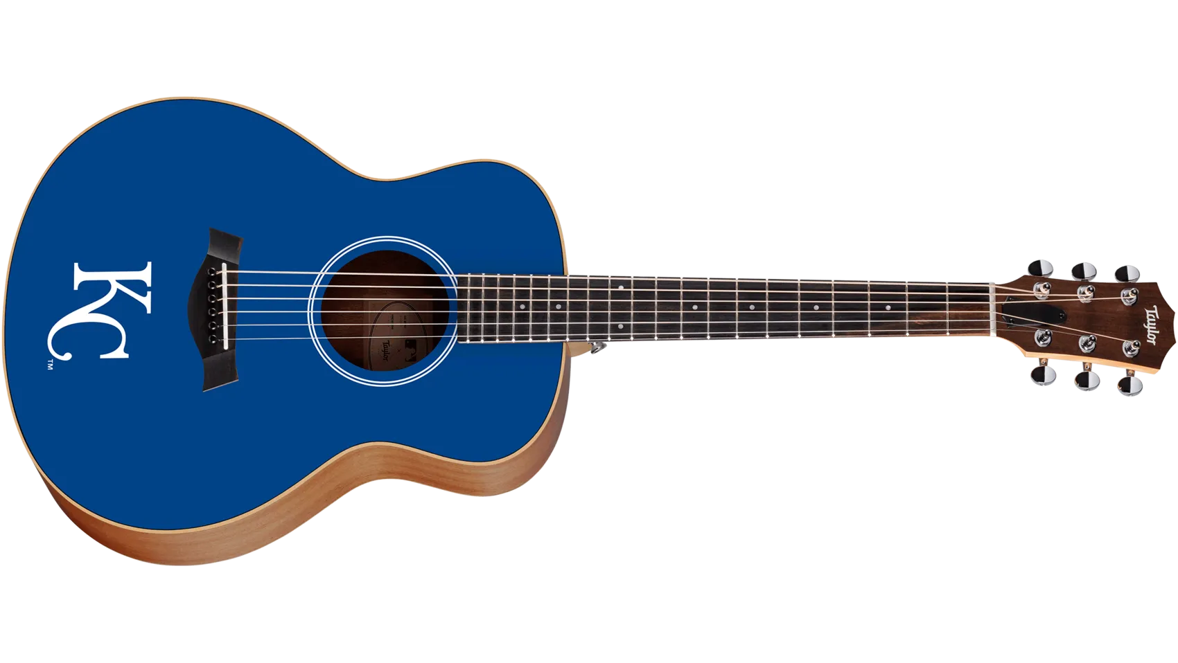 Rock your team colors with a Kansas City Royals™- branded Taylor GS Mini acoustic guitar officially licensed by MLB. The award-winning GS Mini offers easy playability, musical pitch precision, and a rich, bold voice in a compact, inviting form.