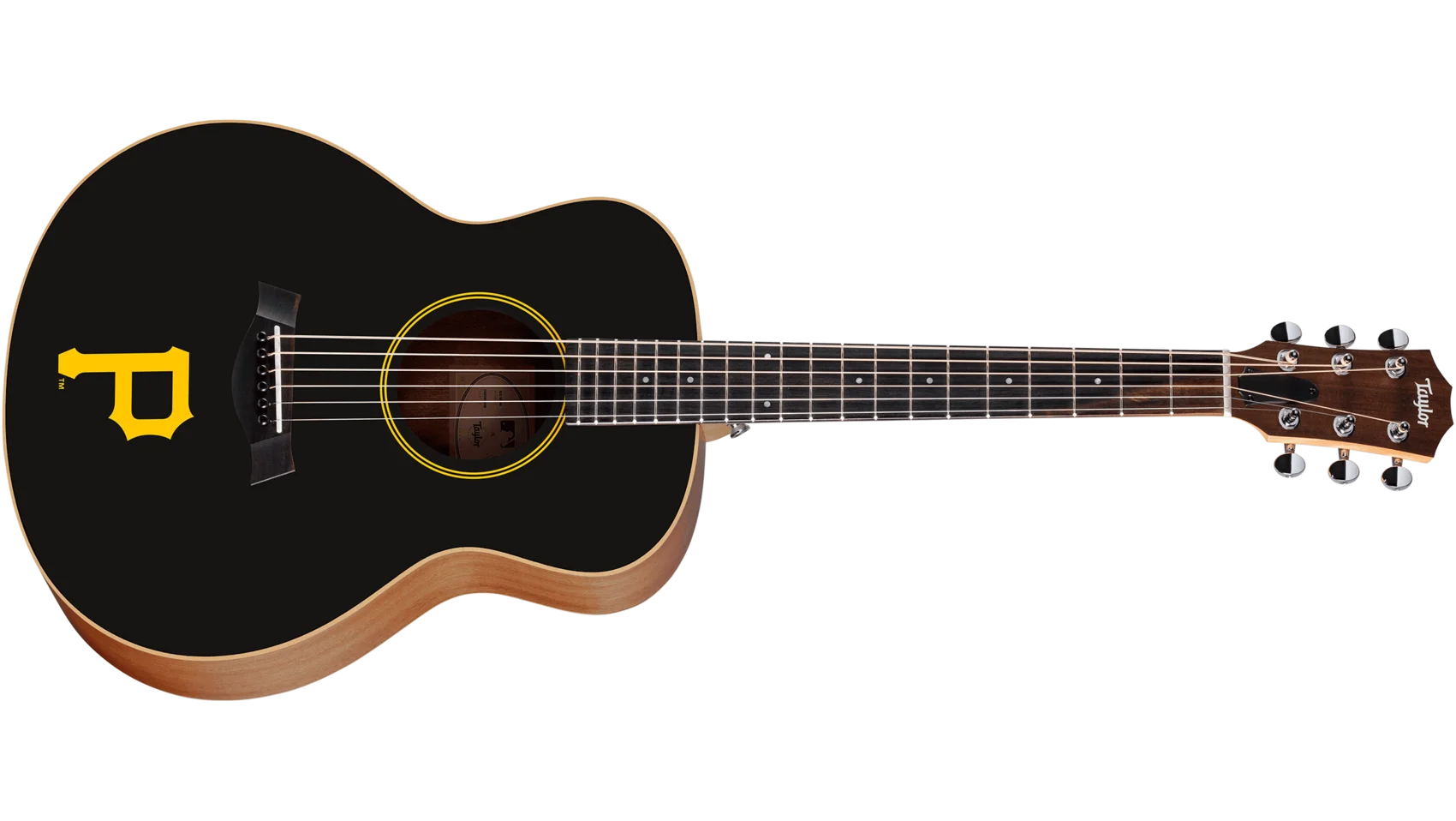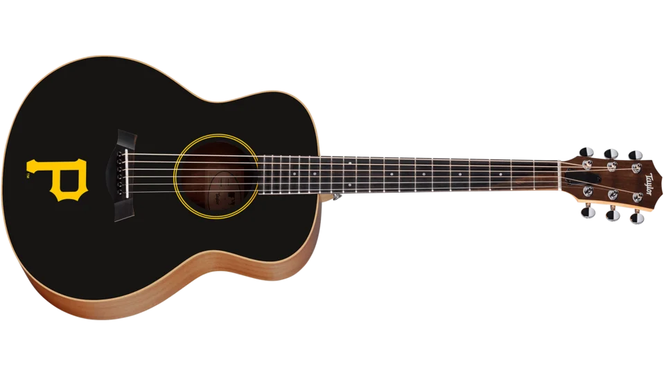 Rock your team colors with a Pittsburgh Pirates™- branded Taylor GS Mini acoustic guitar officially licensed by MLB. The award-winning GS Mini offers easy playability, musical pitch precision, and a rich, bold voice in a compact, inviting form.