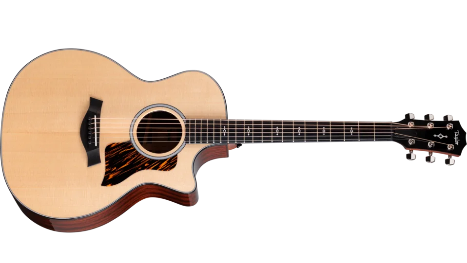 This versatile model boasts solid sapele back and sides paired with a Sitka spruce top in a gloss-finish Grand Auditorium body. The result is a punchy, shimmering midrange with vibrant trebles balanced by a warm, woody low end. Its tonal depth is enhanced by new scalloped V-Class bracing, which also increases volume, sustain and pitch accuracy. A slender, long-tenon Action Control Neck™ delivers signature Taylor playability and boosts low-end resonance. The groundbreaking design enables players to make easy, on-the-fly string height adjustments.