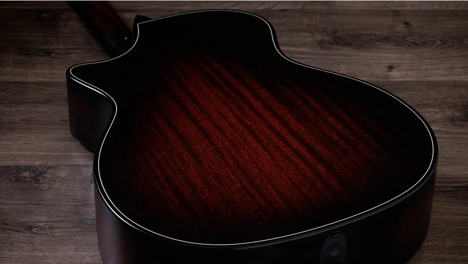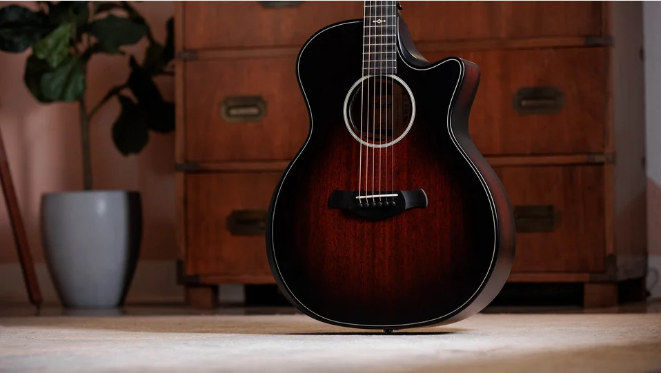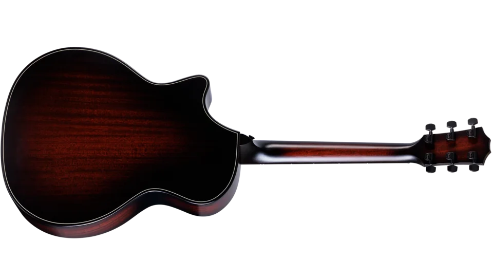 With a suite of updates to complement its array of comfort-enhancing features, the Builder's Edition 324ce offers a newly refined take on a versatile Grand Auditorium guitar. This model boasts back and sides of solid sapele paired with a mahogany top, yielding a hefty midrange punch with a focused, balanced character and controlled overtones. Inside, a scalloped take on our V-Class bracing architecture dials up improved volume, sustain and harmony between notes across the fretboard. Other upgrades include a long-tenon Action Control Neck that enhances resonance while offering unprecedented adjustability so you can achieve the perfect feel, as well as new Claria electronics with an intuitive mid-contour control that makes it easy to get perfect plugged-in tone for amplified scenarios. Other details include chamfered body edges, a beveled armrest and cutaway, Weathervane inlays in grained ivoroid, and a satin finish with a Kona burst color for the top and back.
