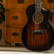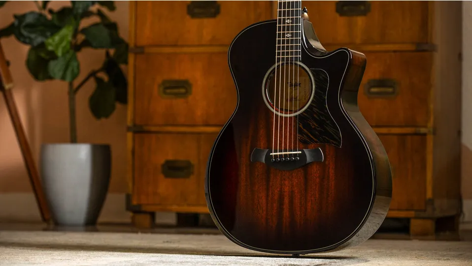 Crafted at the intersection of comfort, rich sound and high-level performance, the Next Generation Builder's Edition 524ce adds an exciting new flavor of acoustic inspiration to our collection of player-focused guitars. This thoughtfully contoured Grand Auditorium sports a beveled armrest, beveled cutaway and chamfered edges, adding up to a remarkably comfortable, easy-playing feel for any style. Tonally, solid mahogany paired with back and sides of responsibly sourced Shamel ash combine for a warm, focused midrange sound that includes a touch of natural compression from the hardwood top to smooth out the attack, while the scalloped V-Class bracing inside strategically improves top vibration for an even richer, warmer, more powerful response. Players are sure to appreciate the adjustability of the new Action Control Neck and the intuitive controls of our new Claria electronics, all part of the Next Generation design philosophy. Visual details include a single-ring Italian acrylic rosette, Compass inlays, antique chrome Gotoh 510 tuners, a firestripe pickguard, and a glossy Kona Burst finish with a satin-finished neck.