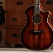 Guitarists love Hawaiian koa for its blend of warmth, clarity and beautiful aesthetics. The Next Generation K24ce features an all-solid-wood Grand Auditorium body crafted from figured Hawaiian koa, admired for its complex, visually striking grain patterns. The tropical wood asserts a lively, punchy voice that gains sweetness and depth with time and play. Scalloped V-Class bracing complements a strong midrange response and clear trebles with warmer lows and richer open-string resonance. The modified voicing architecture preserves the projection, sustain and pitch accuracy of our original V-Class bracing pattern. Thanks to an Action Control Neck, players can raise or lower string height in seconds to dial in their favored handfeel. Onboard Claria System electronics make it easy for you to shape your desired amplified tone for any live performance setting. With graceful Spring Vine inlays headlining a suite of stunning wood-forward appointments that reflect koa's island heritage, the Next Generation K24ce is a stage-ready option that will keep you inspired for years to come.