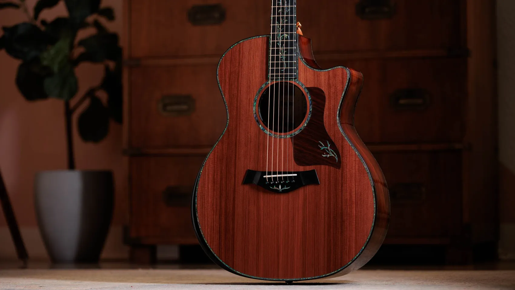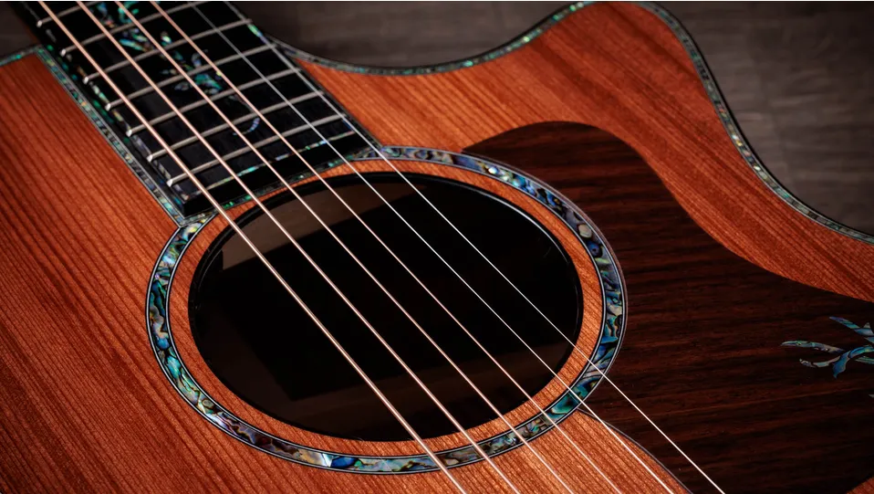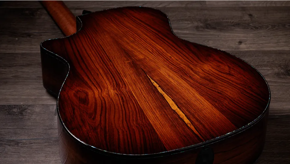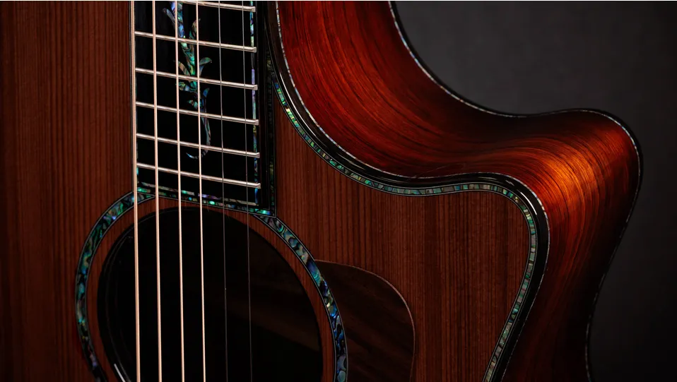 With striped sinker redwood, Honduran rosewood and a trio of Next-Gen design features, this model embodies Taylor's best, from top to bottom.