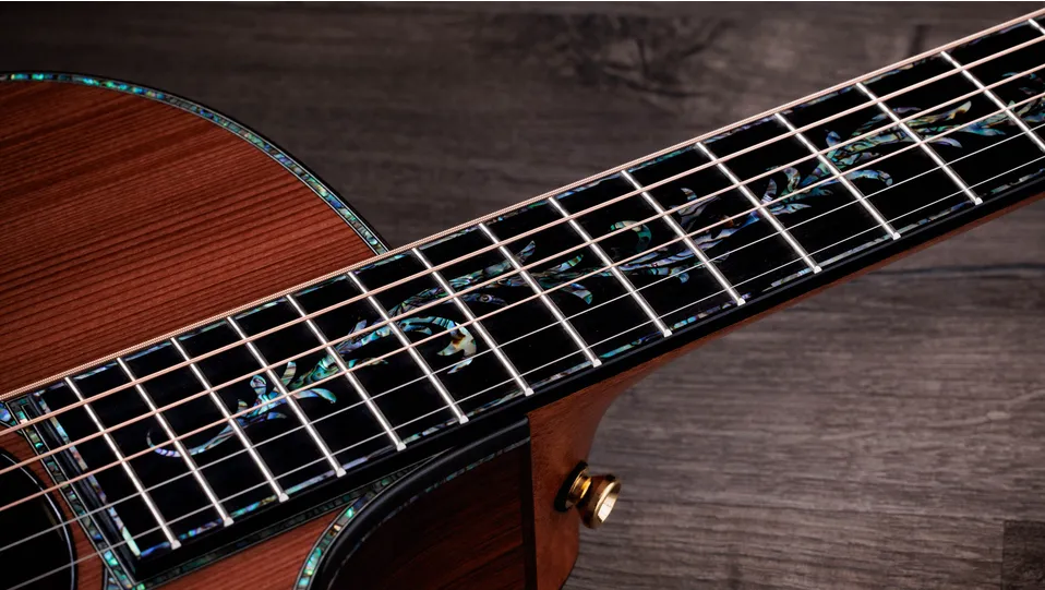Building on Taylor’s legacy of easy-playing necks, the new Action Control Neck pairs a long-tenon joint for added warmth and depth with a patented system for effortless string height adjustment.
