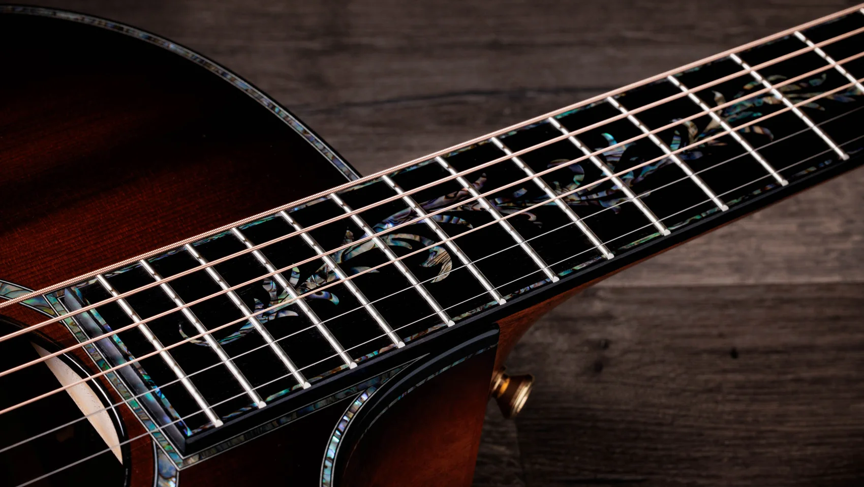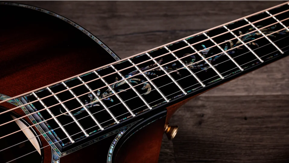 At the pinnacle of the Taylor line, the Presentation Series serves up an unparalleled combination of signature craftsmanship, rich tone and artful aesthetics, and the new PS14ce Ironbark is no exception. This beautifully appointed Grand Auditorium acoustic-electric is crafted with back and sides of red ironbark, a responsibly sourced tonewood that yields a sweet yet muscular voice with a punchy midrange character. A sinker redwood top sourced from logs submerged in California riverbeds delivers cedar-like warmth with remarkable touch sensitivity and dynamic range, while our V-Class interior bracing adds more sustain, louder volume and improved harmony between notes all the way up the neck. Premium features include a radius-style ebony armrest that offers a smooth surface for your strumming arm and Gotoh 510 antique gold tuning machines with an ultra-precise 21:1 gear ratio. The PS14ce Ironbark sports a single-ring paua rosette, ebony binding with paua top edge trim, ebony bridge pins with green abalone dots, and elaborate California Vine inlays in paua and mother of pearl for the fretboard, peghead, and bridge. It's finished with a full-body gloss and a shaded edgeburst color treatment and includes both ES2 electronics and a deluxe hardshell case.