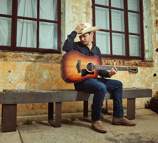 A Mexican stringed instrument in the guitar family featuring 10 steel strings in five doubled courses.