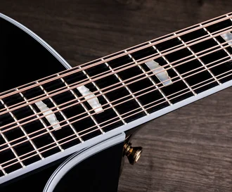 Like the bajo quinto, another instrument voicing commonly associated with different regional Mexican and other Latin music genres (including Norteño, Tejano and conjunto) is a modified, unison-strung 12-string guitar. (This means all six courses are strung as unison pairs instead of a traditional 12-string setup, in which the lower four courses — E, A, D and G — are strung as octave pairs). It’s sometimes referred to as a requinto-style setup or a Mexican 12-string. Traditionally, players wanting a unison 12-string would have a standard-strung 12-string guitar modified by a luthier — typically with bridge reinforcements needed to support the added string tension. Because this unison 12-string doesn’t have an official name, we’ve named our version a doce doble, which in Spanish means “double 12.” It produces a bold and resonant double-course voice.