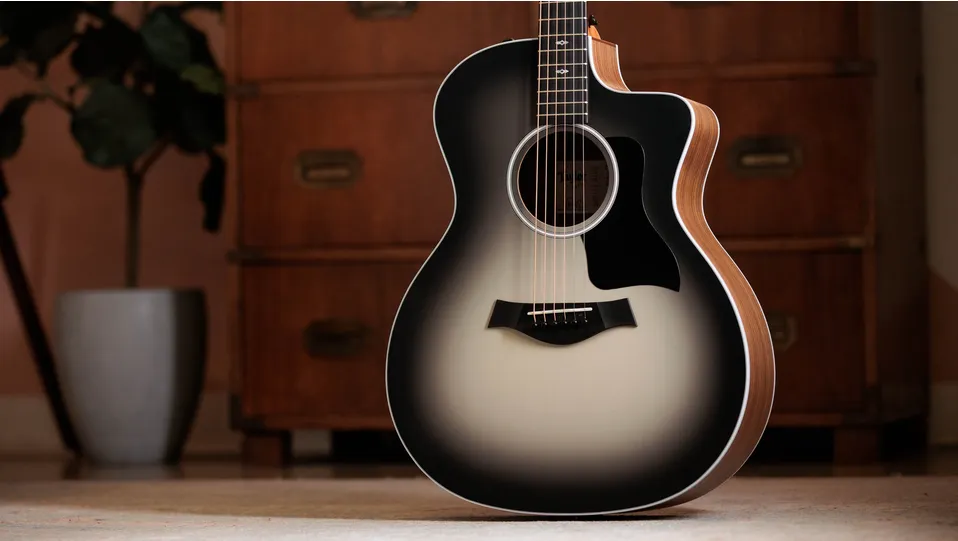 With its distinctive burst top and bold, rich acoustic voice, this new addition to the Guitar Center-exclusive Sunset Blvd collection should entice players of all styles and skill levels. A solid top of torrefied spruce serves up a clear, versatile sound with plenty of room-filling power and a balanced character that make the Sunset Blvd 214ce Eclipse Burst a great choice for virtually any application. Inside, our C-Class bracing delivers louder volume, longer sustain and improved harmony between notes all the way up the slender, easy-playing Taylor neck, topped with a genuine West African ebony fretboard. White binding, a matching rosette and 50th Anniversary Diamond fretboard inlays add striking contrast with the unique finish treatment, with satin black tuning machines and a black pickguard rounding out the appointment suite. This model includes ES2 electronics for faithful amplified sound and ships with a structured gig bag for protection and portability.