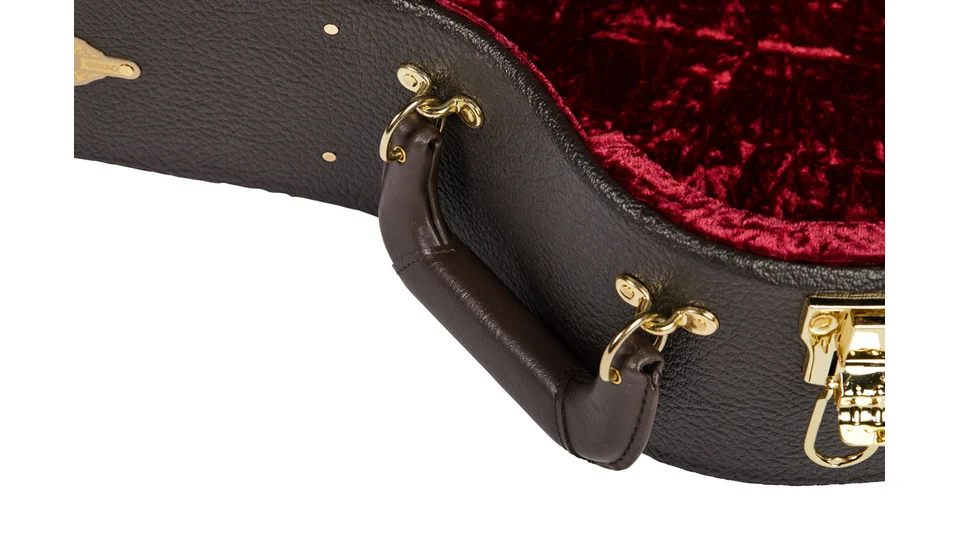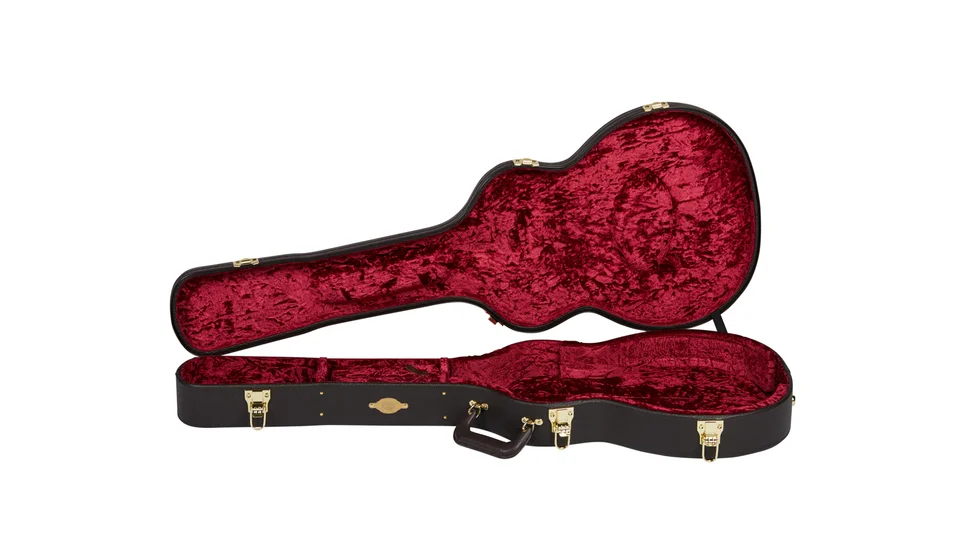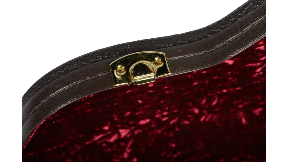 This hardshell Taylor case is covered in textured dark brown vinyl over a 3-ply wooden structure. Your guitar is protected by foam padding covered in a plush crushed velvet lining. Double neck cradles and shape-specific body shaping provides your guitar with a snug, secure fit. Other features include a padded handle, brass-plated latches, bottom and side feet, and an accessories compartment. Fits Taylor T3 or T5 guitars. Model #86135. Note: T5z models require a different case.