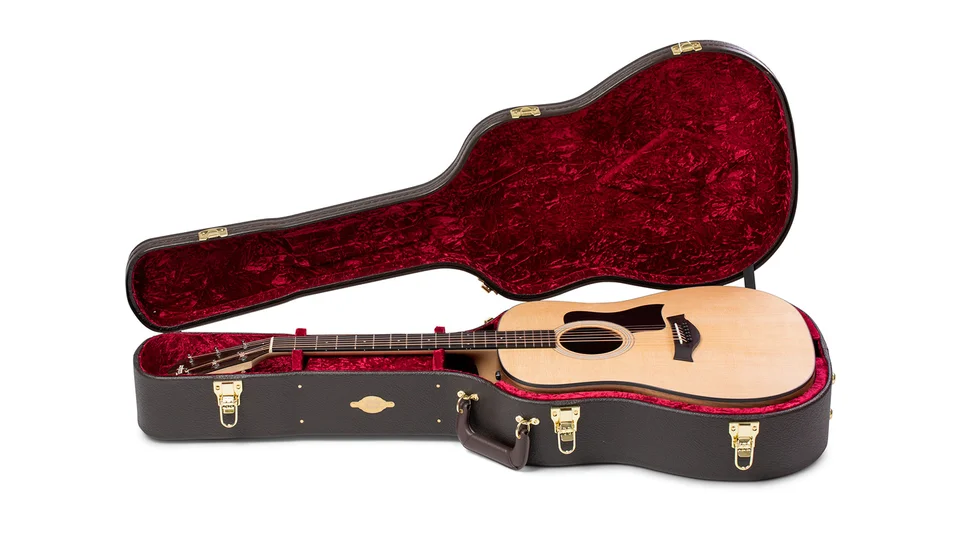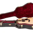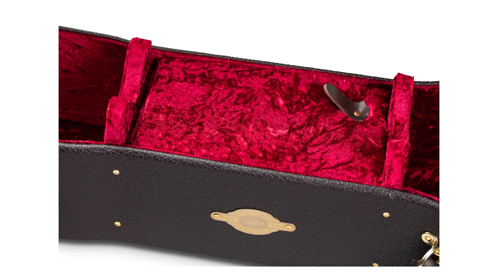 Featuring an attractive vinyl covering over a sturdy 3-ply wooden frame, this Taylor hardshell acoustic guitar case cradles and protects Dreadnought guitars. A hidden storage compartment under the neck cradle provides room to carry accessories, while the crushed velvet interior lining ensures your guitar remains free of marks and scratches. Use this case for Taylor models ending with "0". Model #5202-58