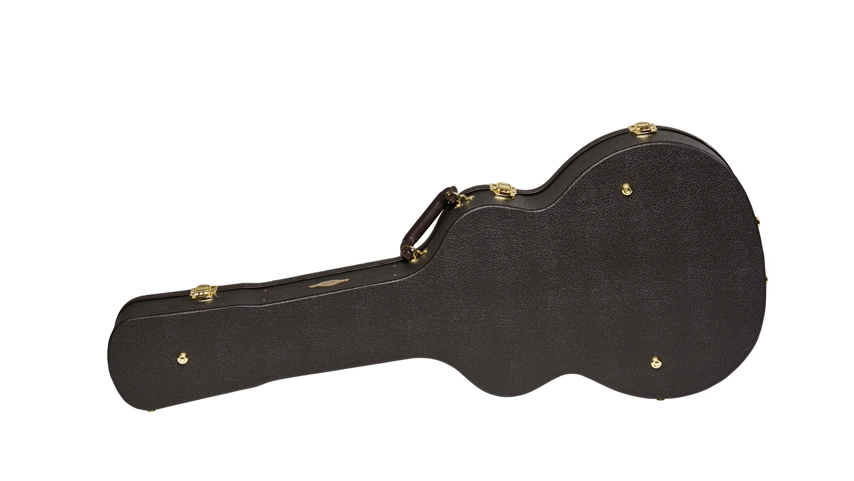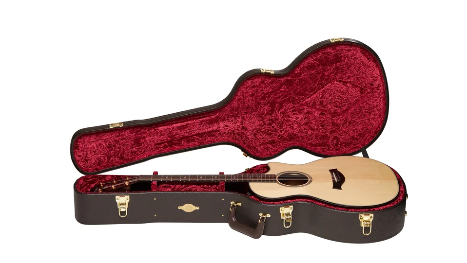 This hardshell Taylor case is covered in textured dark brown vinyl over a 3-ply wooden structure. Your guitar is protected by foam padding covered in a plush crushed velvet lining. Double neck cradles and shape-specific body shaping provides your guitar with a snug, secure fit. Other features include a padded handle, brass-plated latches, bottom and side feet, and an accessories compartment.For Taylor Grand Auditorium guitars in all configurations‚ standard 14-fret, 12-fret, and older NS4 models‚ any Taylor model ending in 4. Model #5201-55