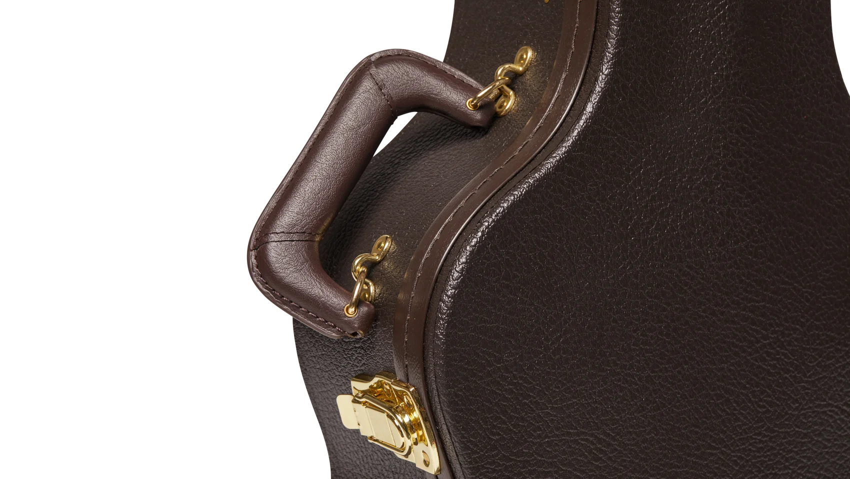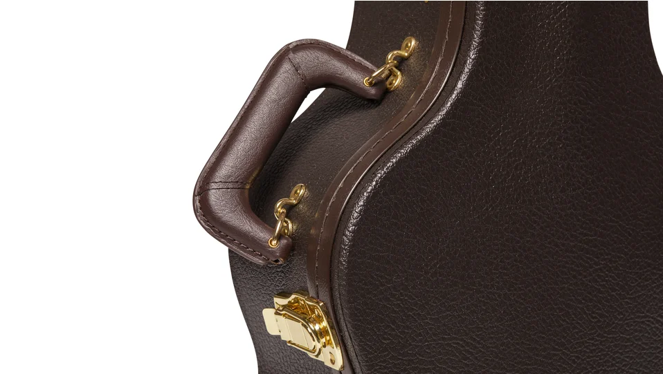• Includes double neck cradles and shape-specific body contours, a padded handle, brass-plated latches, bottom and side feet, and accessories compartment