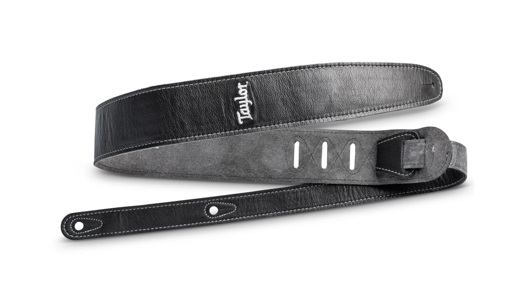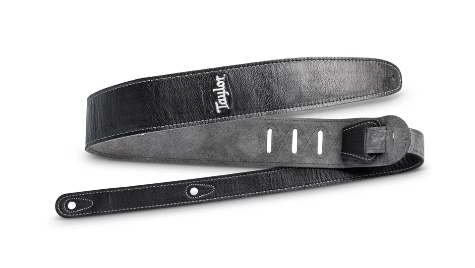 The Taylor Leather Guitar Strap features genuine black leather with beautiful contrast stitching and suede backing. At 2.5" wide, it provides the perfect balance of comfort and support. Finished off with an embossed Taylor logo, this is as classic as leather straps come. Made in the USA. Taylor Model #4102-25