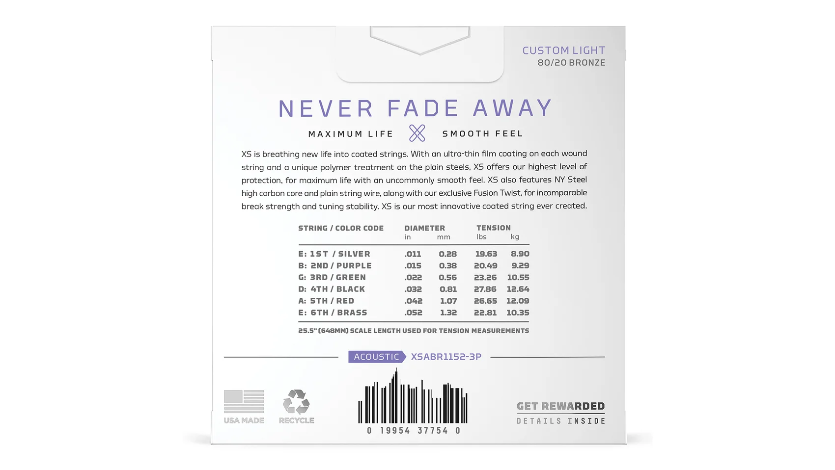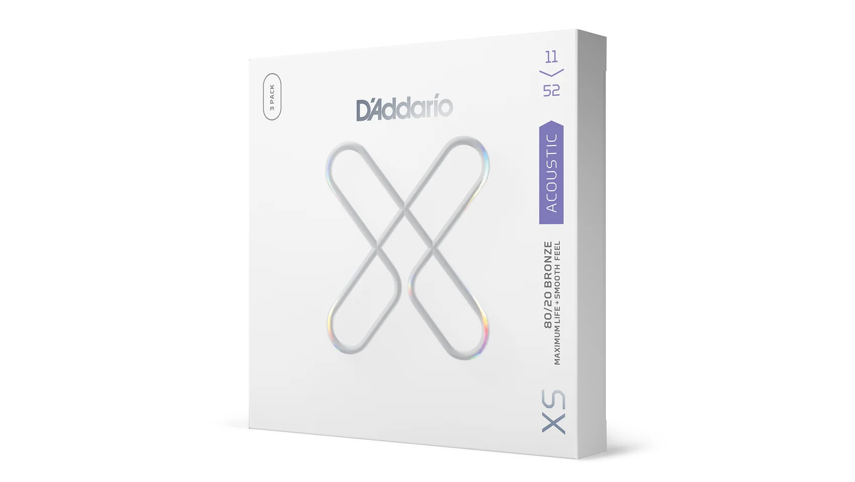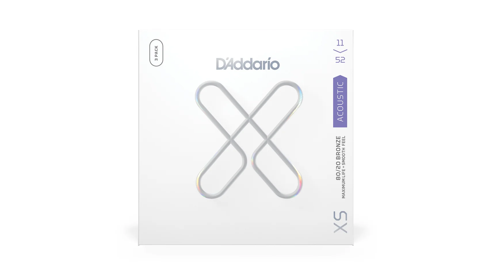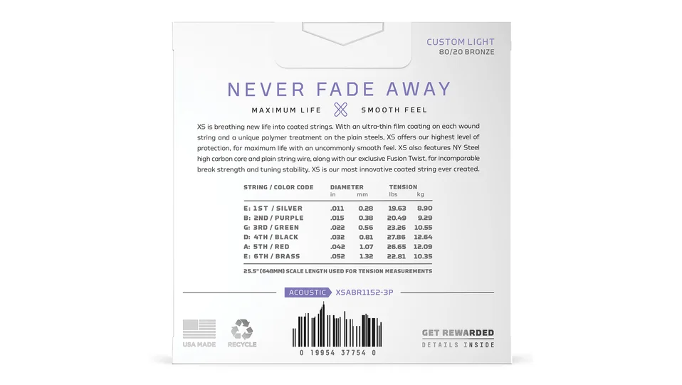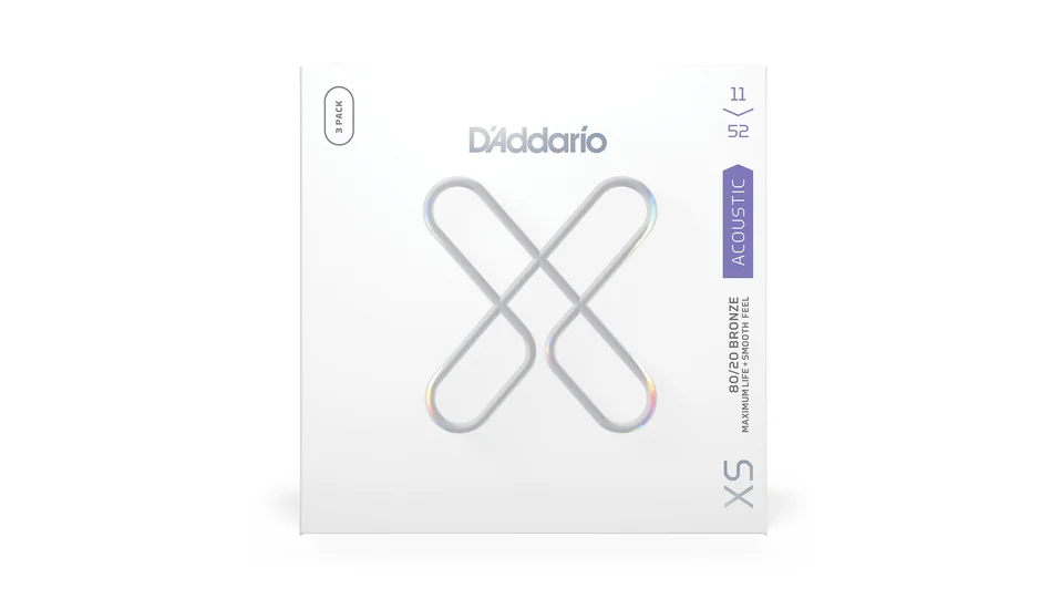 80/20 Bronze are D'Addario's brightest acoustic guitar strings, made to give your tone an unparalleled shine. With the addition of our revolutionary XS coating, our bold, bright 80/20 strings obtain maximum life, with an uncommonly smooth feel. Made with a NY Steel core, 80/20 Bronze wrap wire, and Fusion Twist technology, these coated acoustic guitar strings have enhanced break strength and tuning stability over standard 80/20s, in addition to a dramatically increased lifespan. This 11-52 Custom Light gauge set has slightly more volume and projection than Extra Light, while still being easy to play.